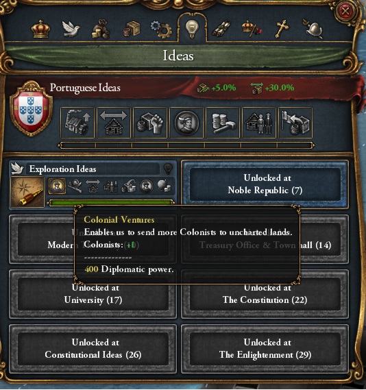 上の白枠が保有数。そこそこあって嬉しい。ポルトガルは既に冒険者と探索者を獲得している。まあ開拓者がないのであまり意味がないが。