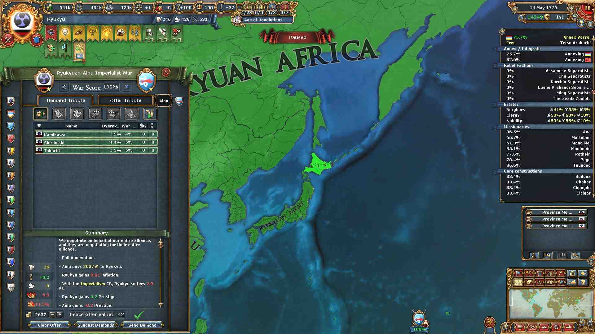 旧大陸の属国全ての外交併合が完了しました。