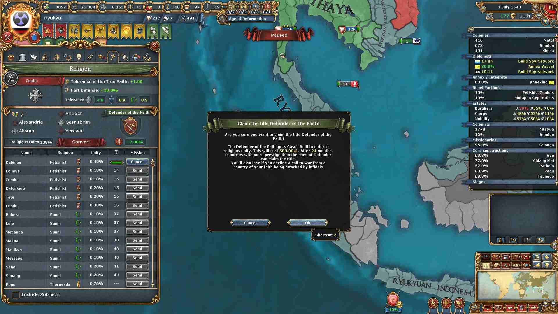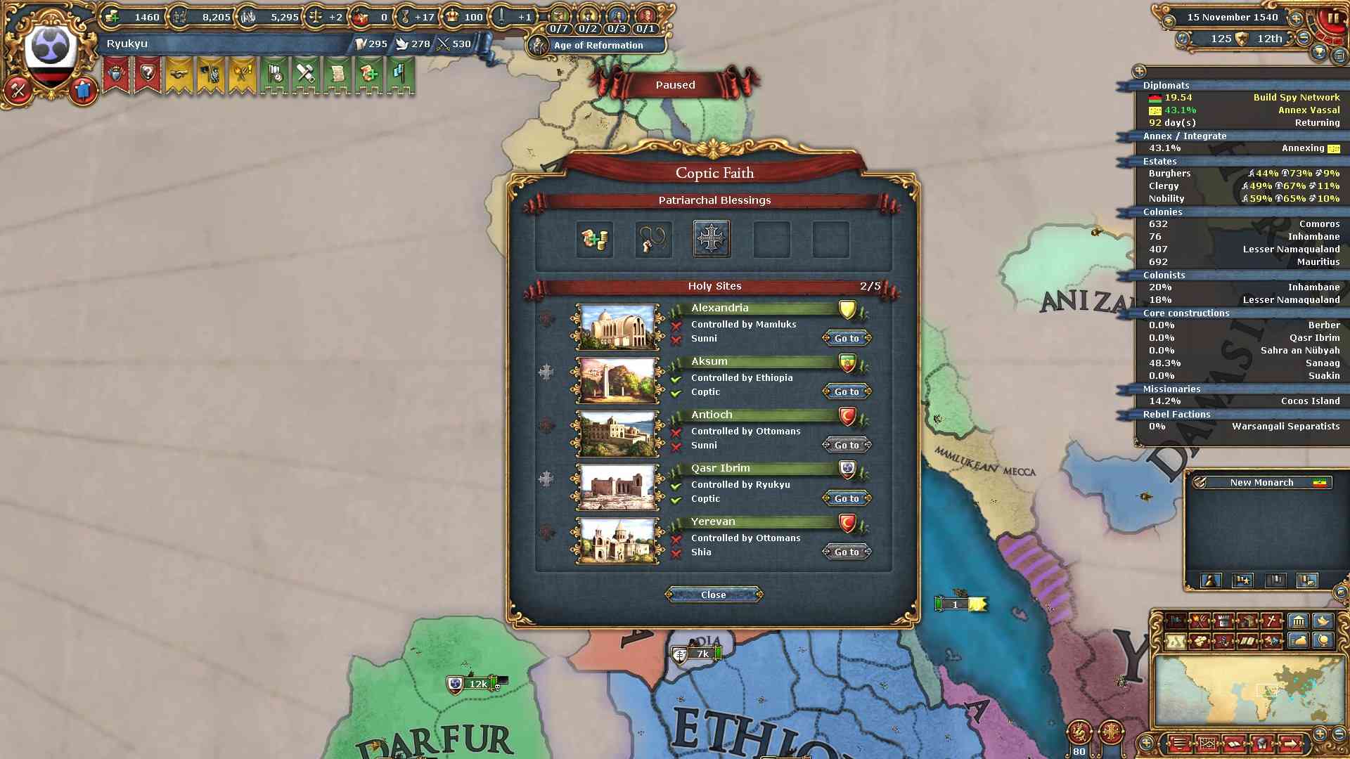 コプト教の州を得たので安定度-4と引き換えに