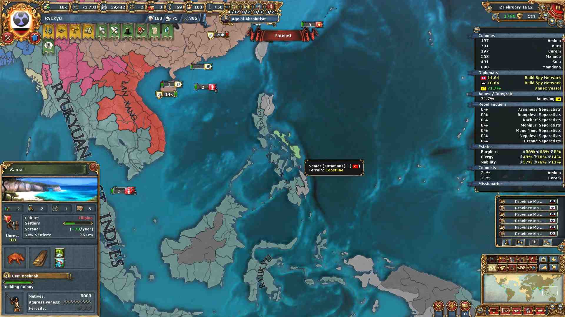 琉球自体は軍質が弱いためOttomansとの戦闘は行いません。