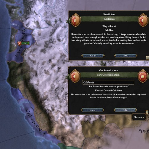 これにより勢力圏が広がった新大陸の植民者たちに暁は自治を認め、1566年、植民地国家カリフォルニアが成立しました。