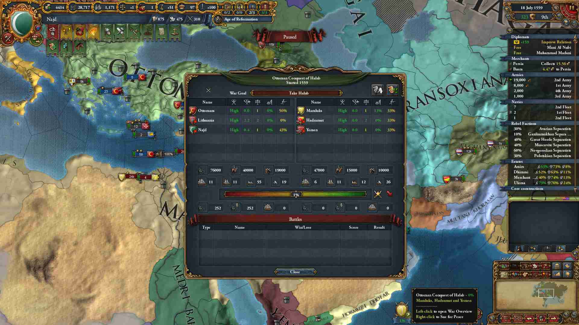 ライバルHormuzがMamluks、Transoxianaと同盟していて厄介だったため、Sistanを使って釣りだし宣戦