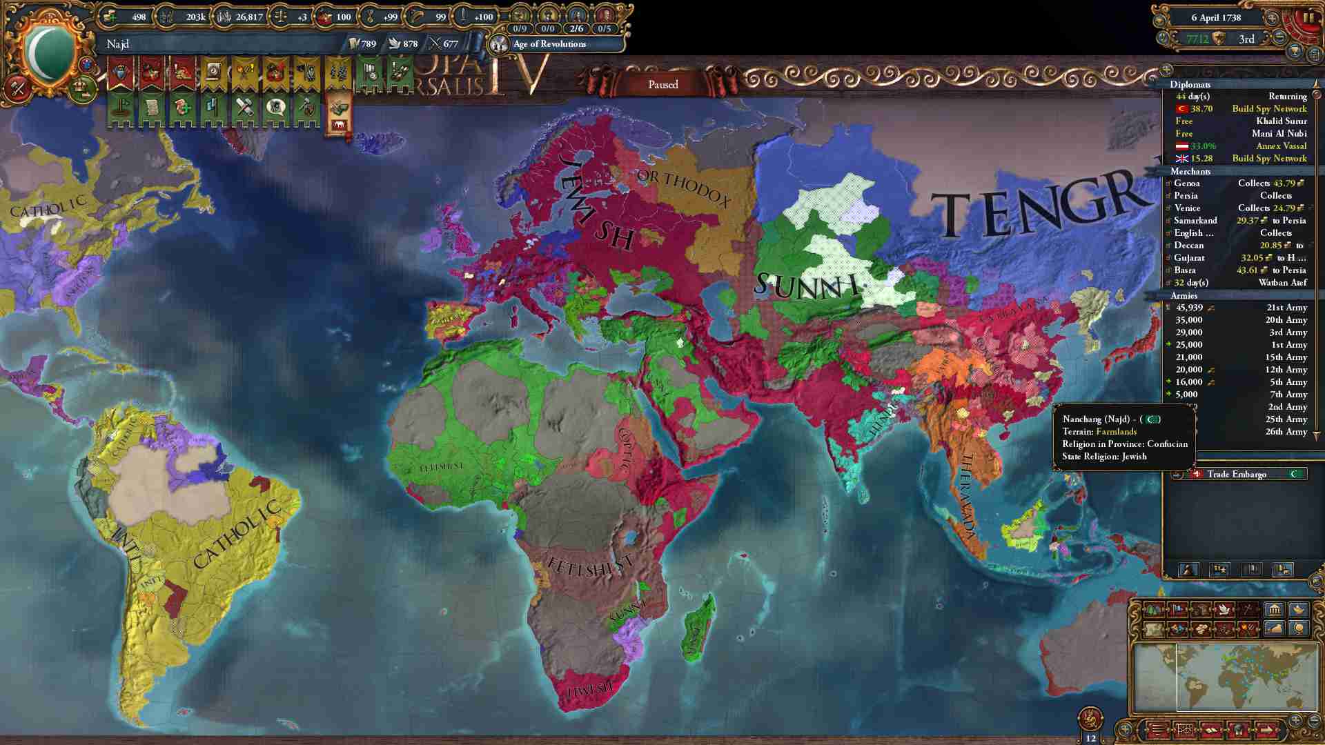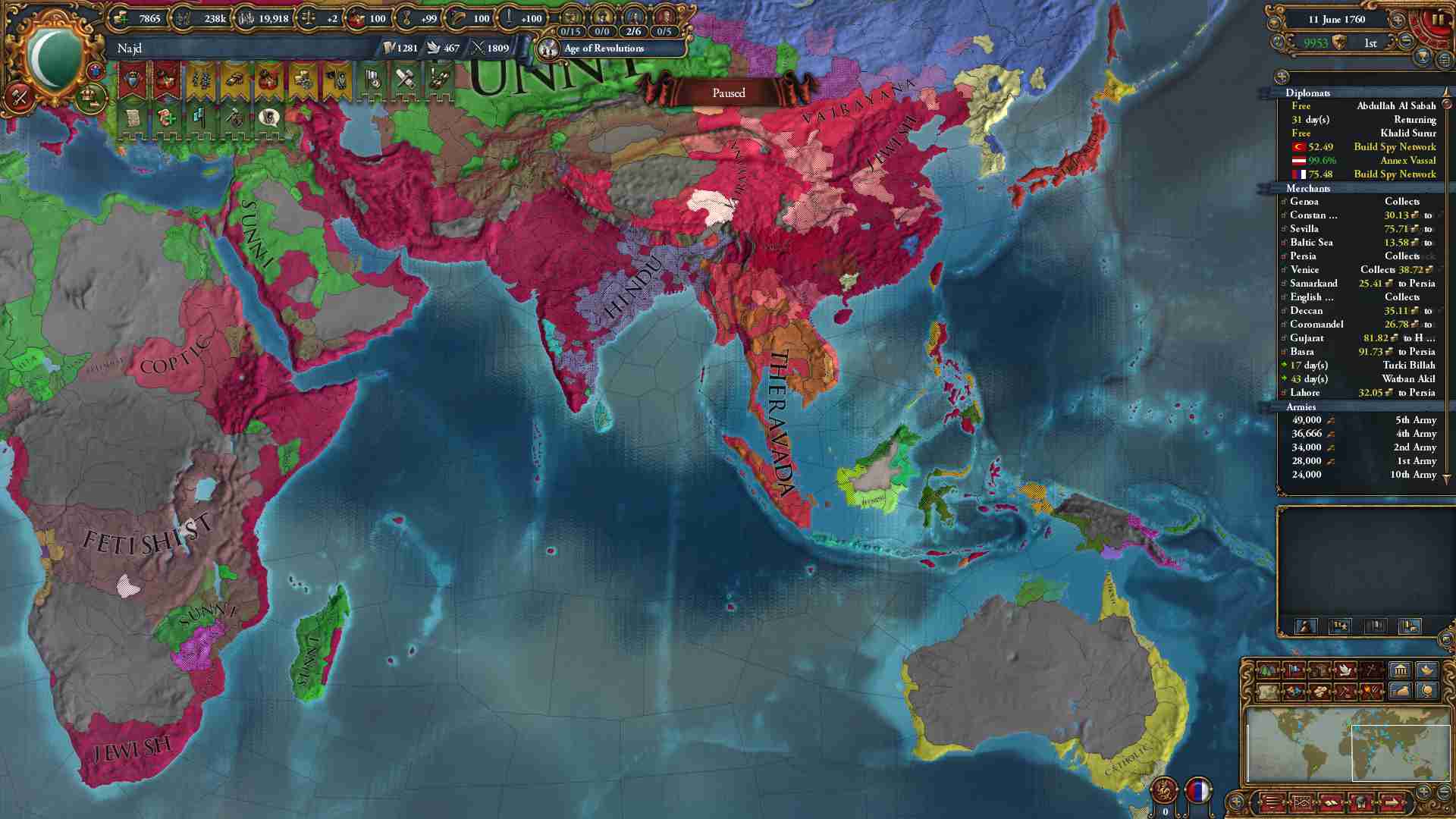 | 1735/?? | Majapahit | ←開戦後にMingから独立する国が | ←続出し、その都度宣戦&併合した結果 | ←OEが増えすぎたため1738/03白紙講和 |