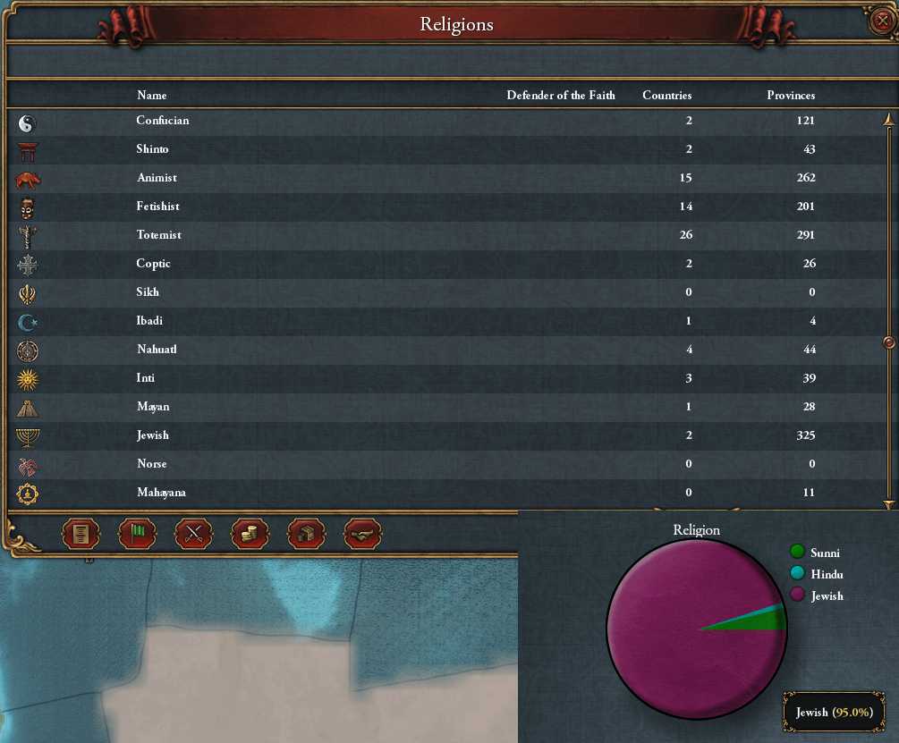 最終的にユダヤに染まった州は2162州だったので、属国による自力改宗も含め200年強で1837州を改宗した計算になる
