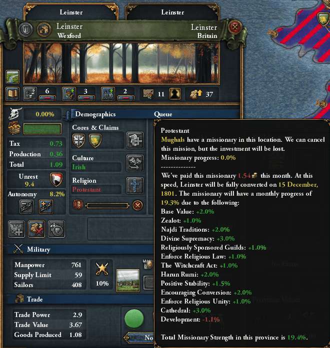 州によっては5か月弱で改宗(即ち州布教強度+20%以上)できてしまう
