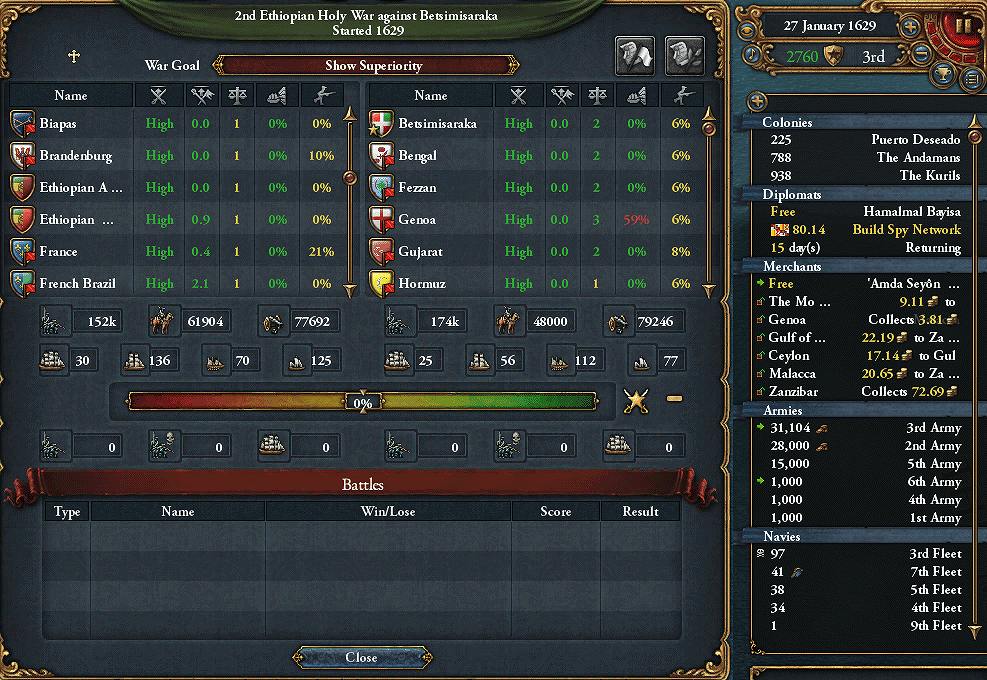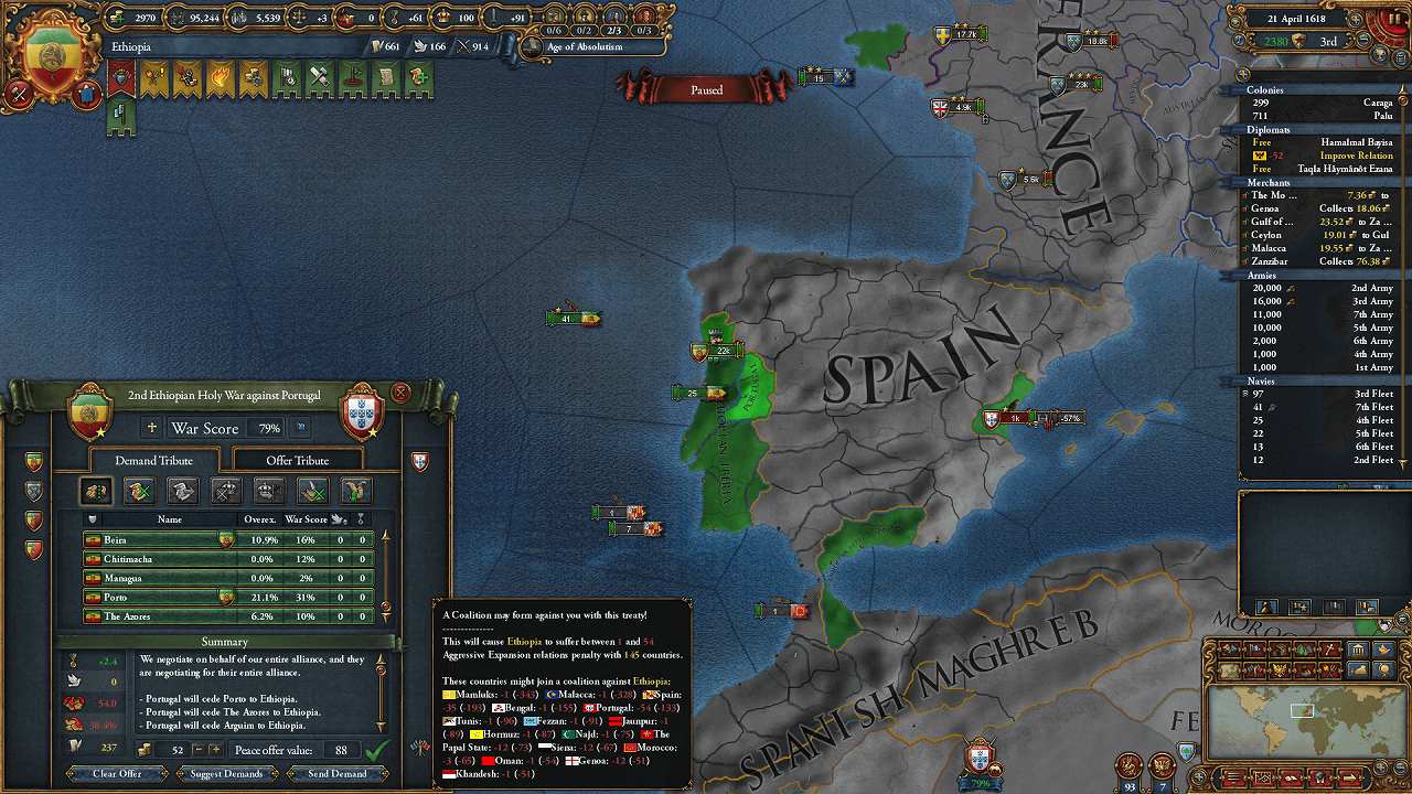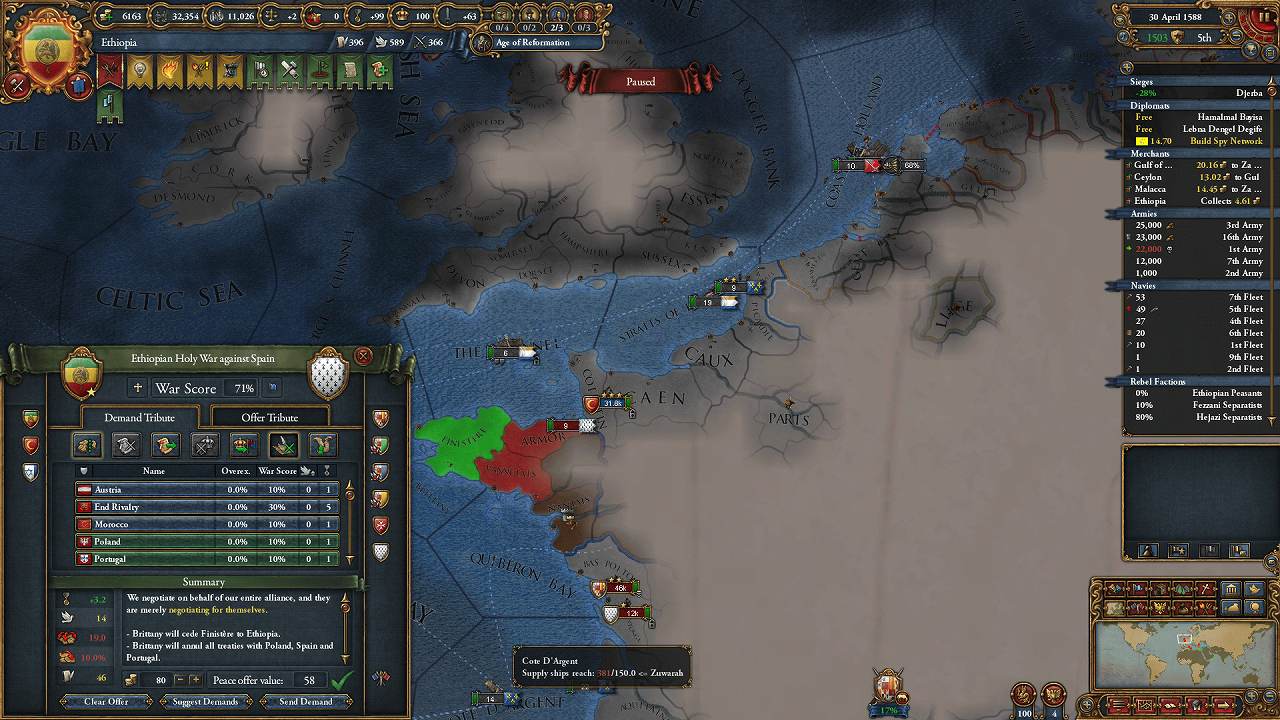 SpainがCAPEの隣に入植してくれたので、聖戦CBが使用可能に