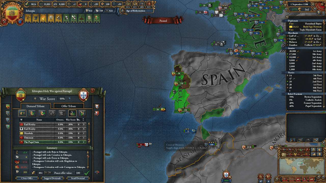 割譲:Morocco 2(地中海沿岸)、Mutapa 4(金産出州を含む)
