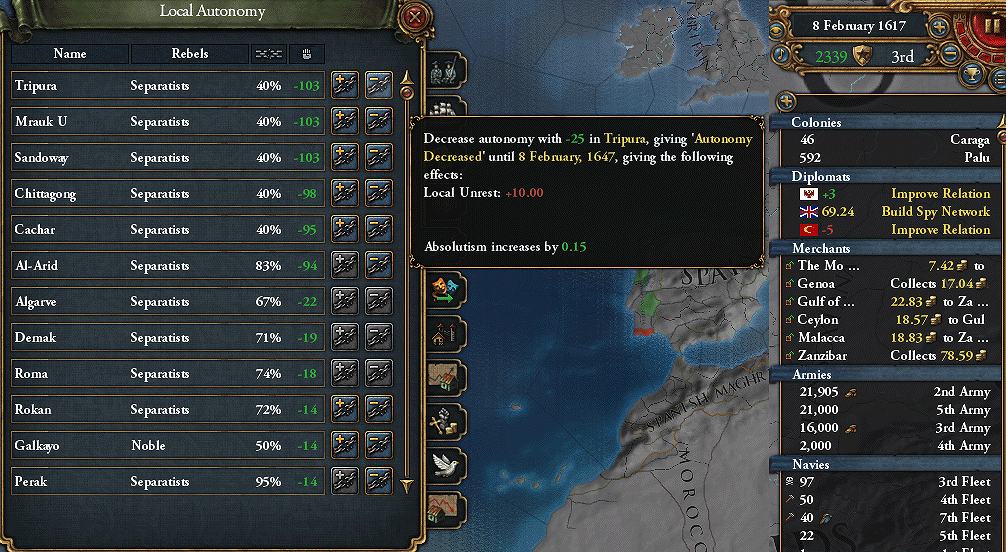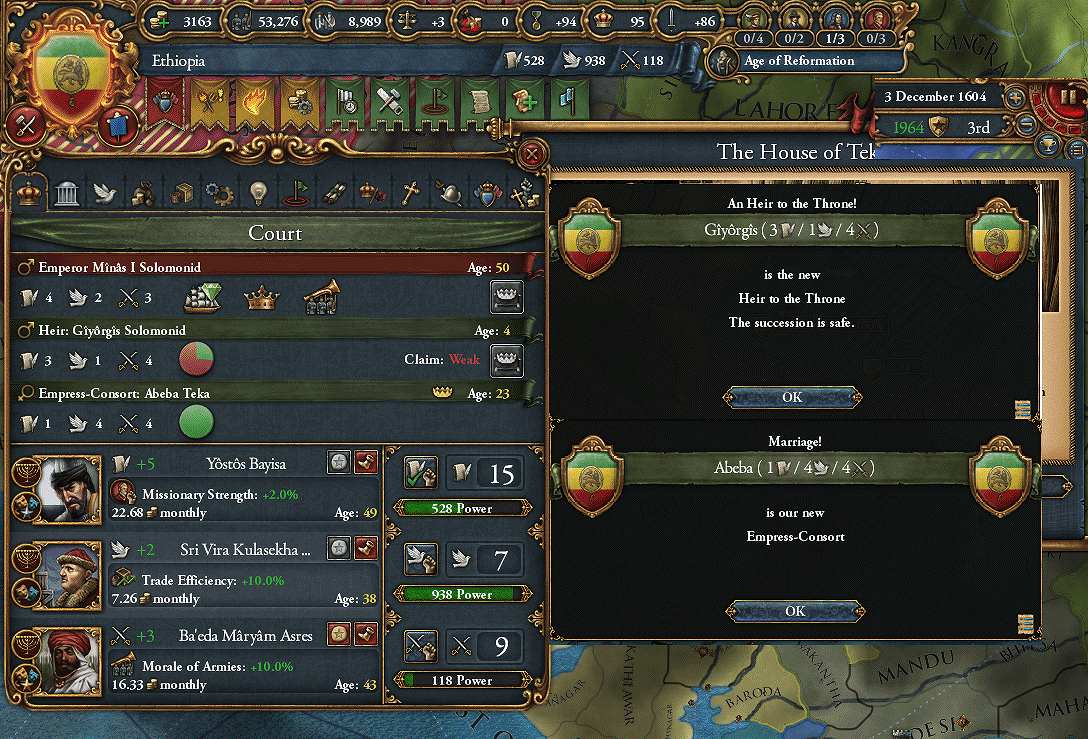 戦中に"Global Trade"受容→受容ボーナス+「インド貿易会社の設立」Dicisionで商人+2