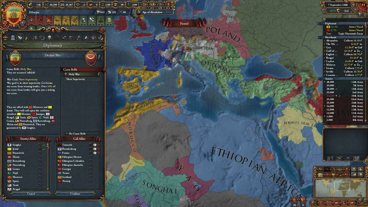 Jolofに宣戦→Moroccoを釣り出して属国化→SpainにMoroccoのコアを返還させる