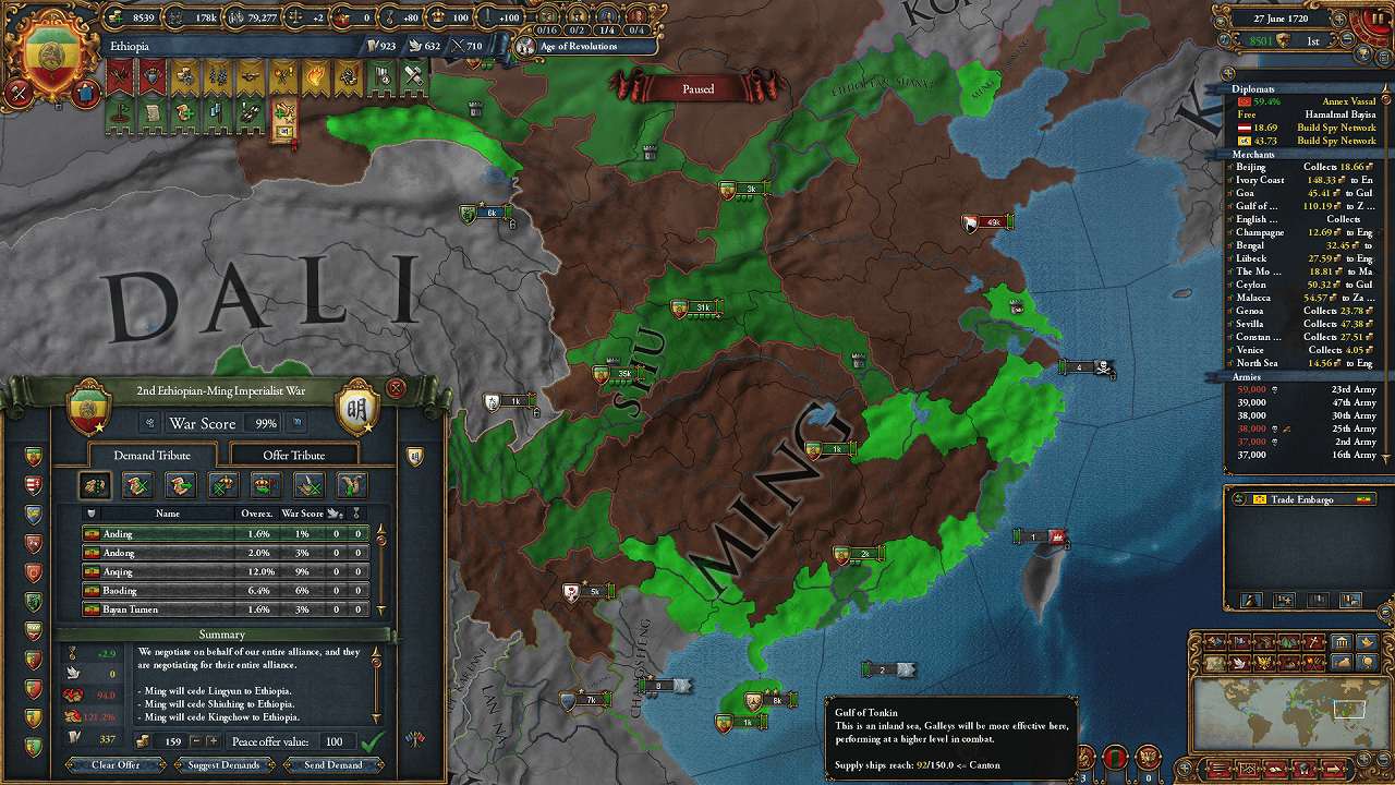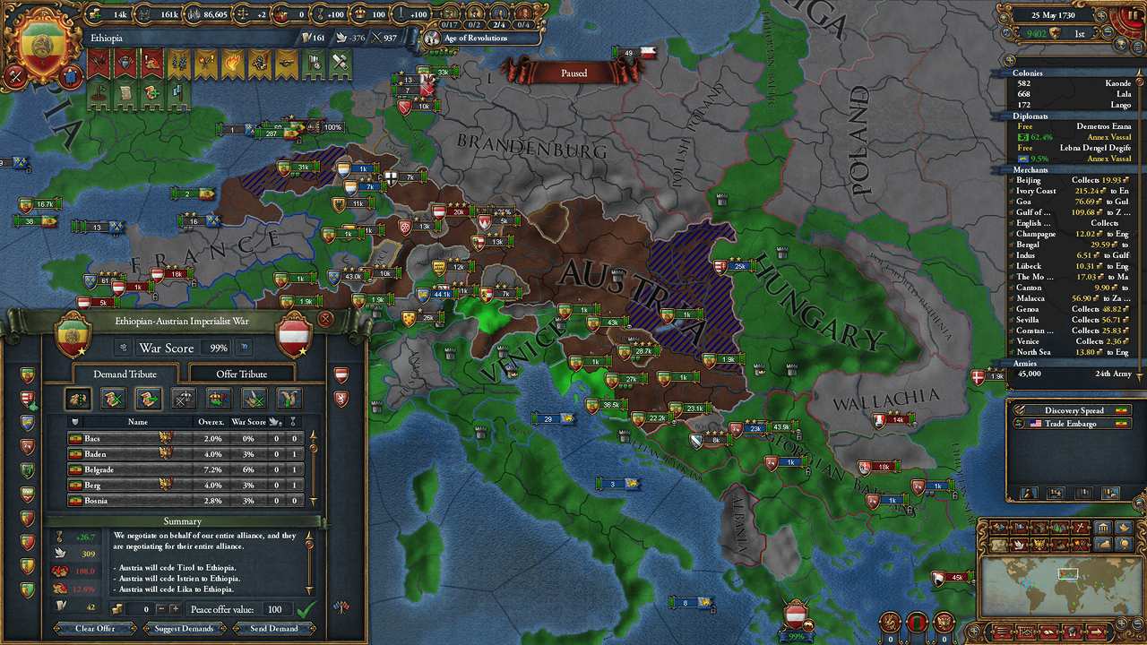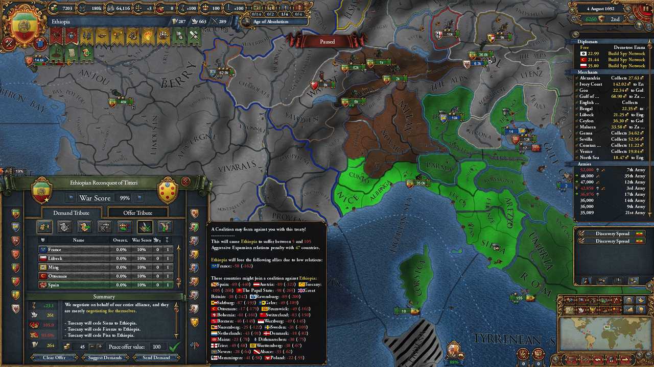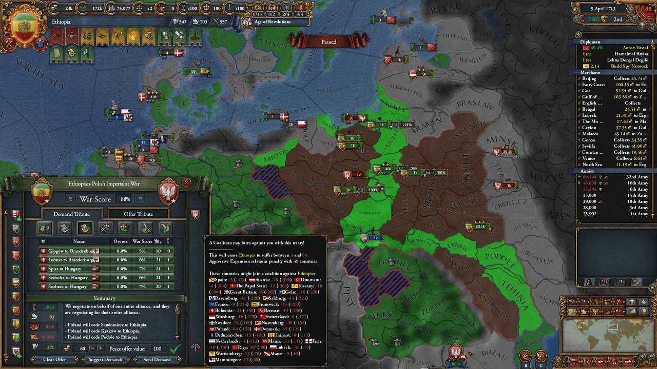 割譲:明 4、Songhai 11、Albania 2、Switzerland 2、Brandenburg 5、Poland 3、Lubeck 3、Chagatai 7、Transoxiana 1、Riga 3、Makuria 1