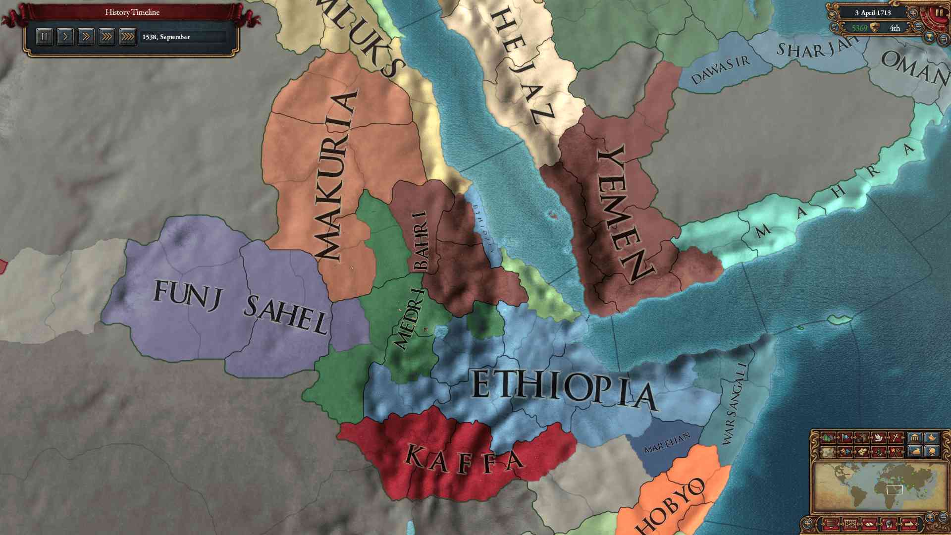 GC開始時はEthiopia領だったユダヤの州(SEMIEN州はコプトに改宗されていたので残り1州)をMedri_Bahriが獲得していた