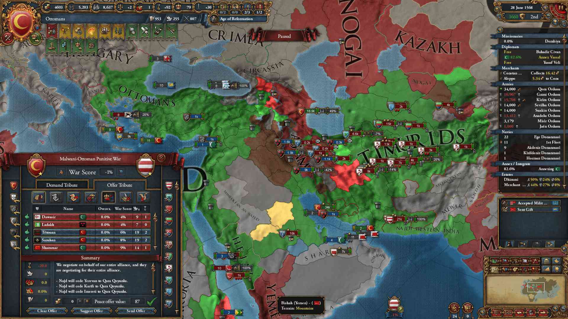 Najdになった後スムーズにMughals化できるように、Sindh領が欲しかったため共戦国に指定(Sindhの同盟Kazakhも参戦)