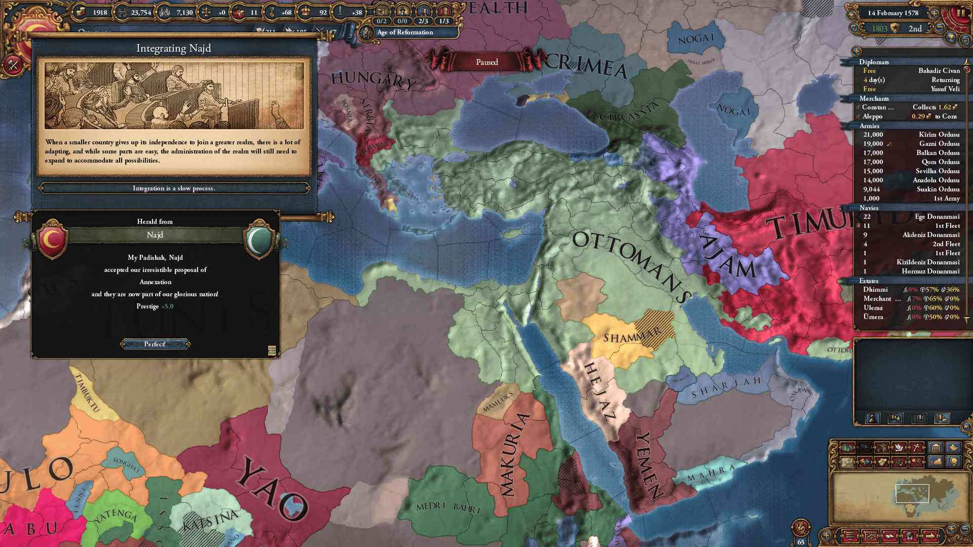 1568/07 KOSTANTINIYYE州をNajdに下賜。独立欲求が20%減少した