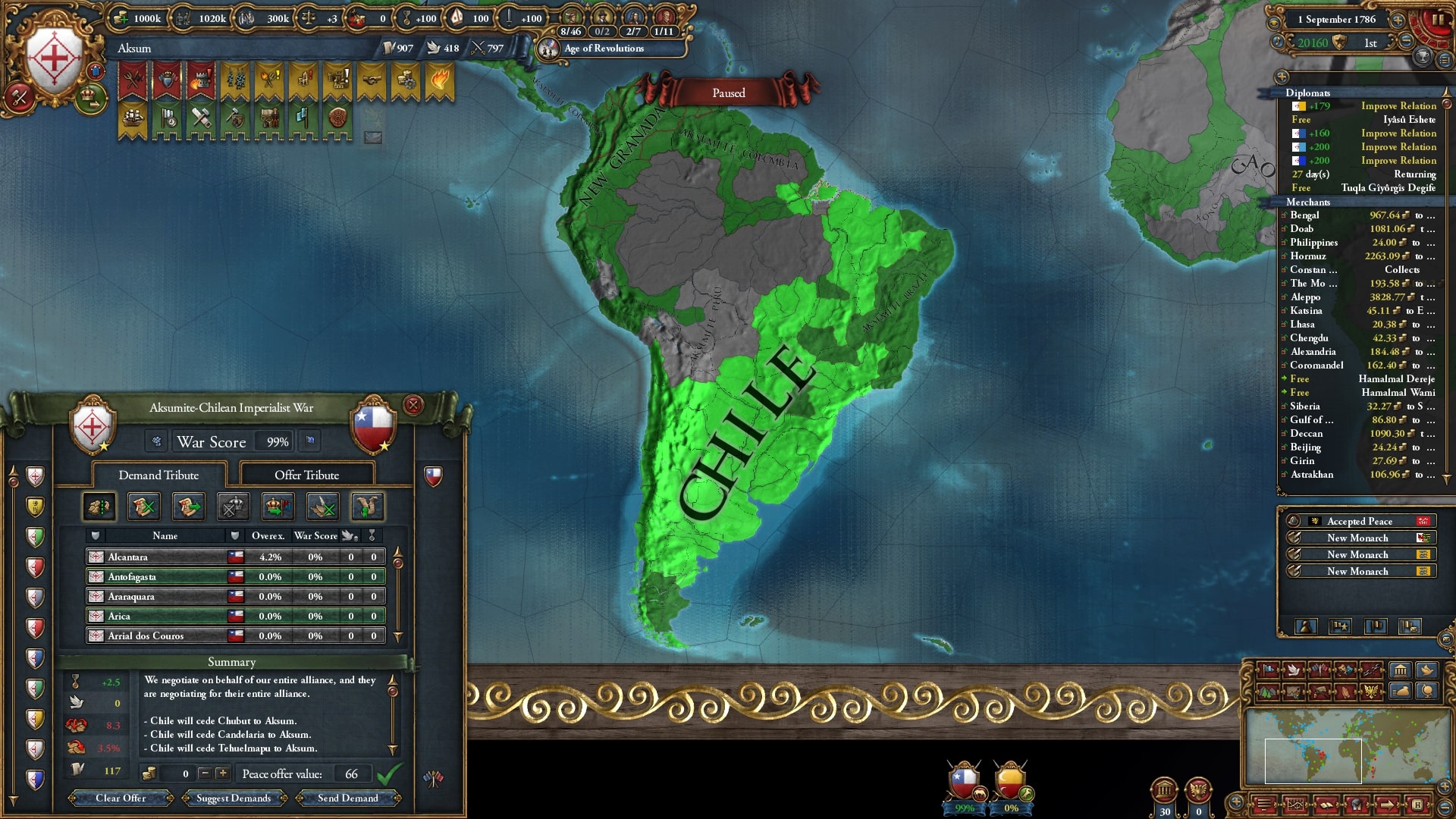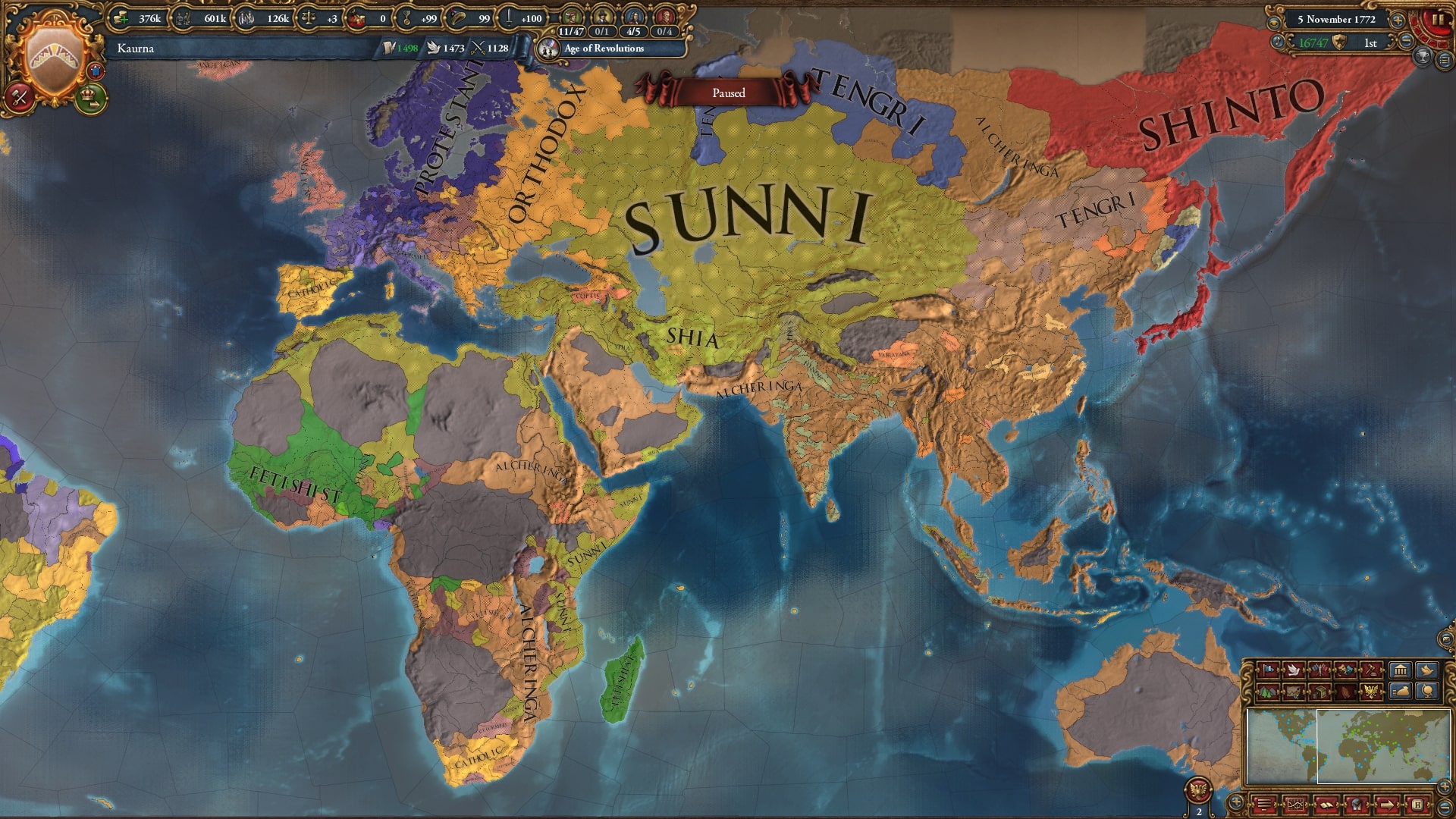 1811年、強制改宗させ残していた南アフリカ国家を併合したことで世界征服を達成。すでに残りの州すべてに宣教師が入り、改宗終了待ちの状態です。