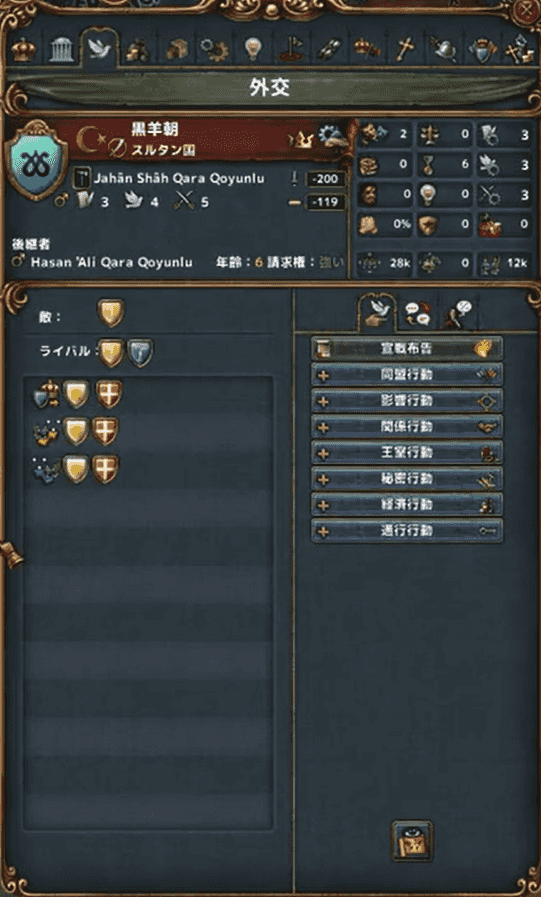 すなわちここの君主が対外拡張に熱心そうな性格ならまずこの国に警告を出し、そうでないなら他のことに外交官を回すんですなw