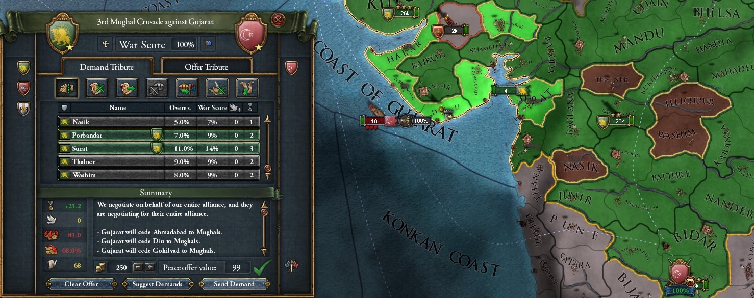 第2次グジャラート戦終結。ミッションに必要な領土を中心に割譲させました。