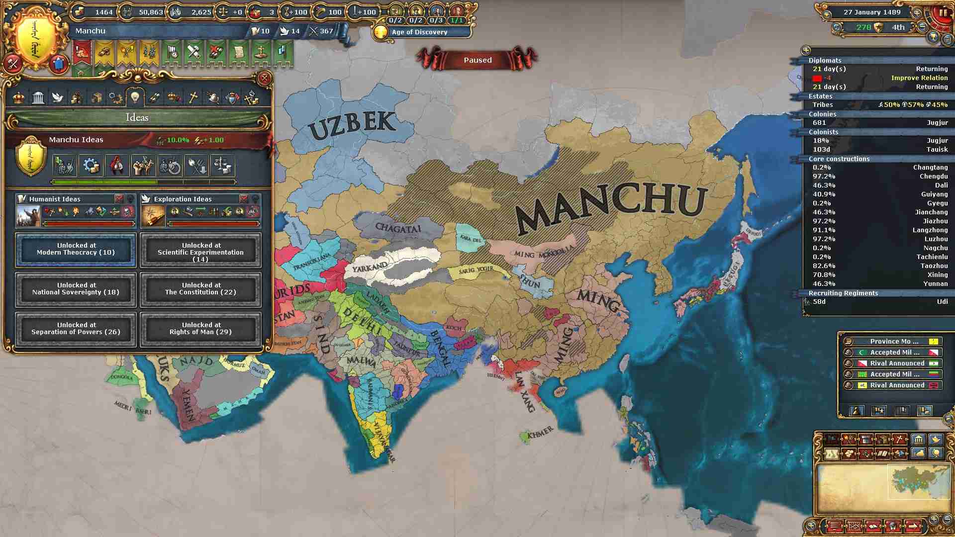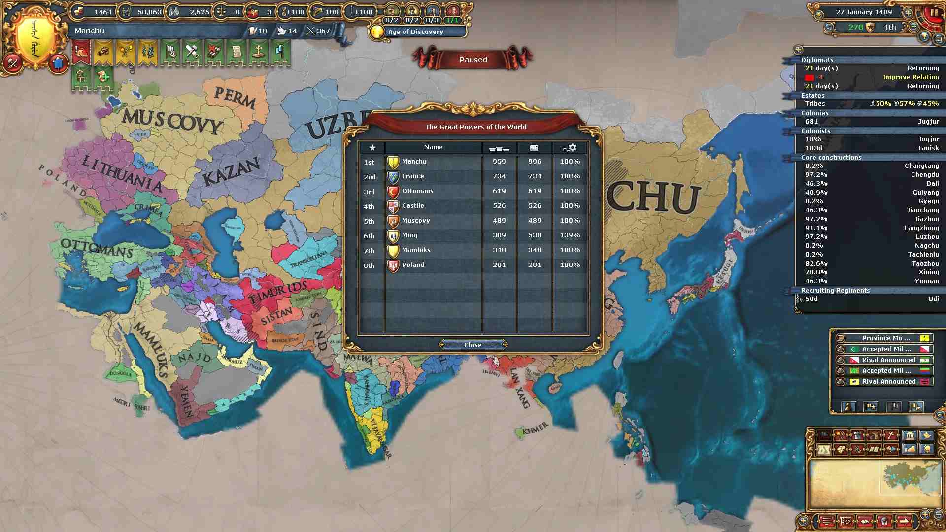 西側が落ち着いたのでMingの朝貢国であるOirat及びKoreaを征服しました。