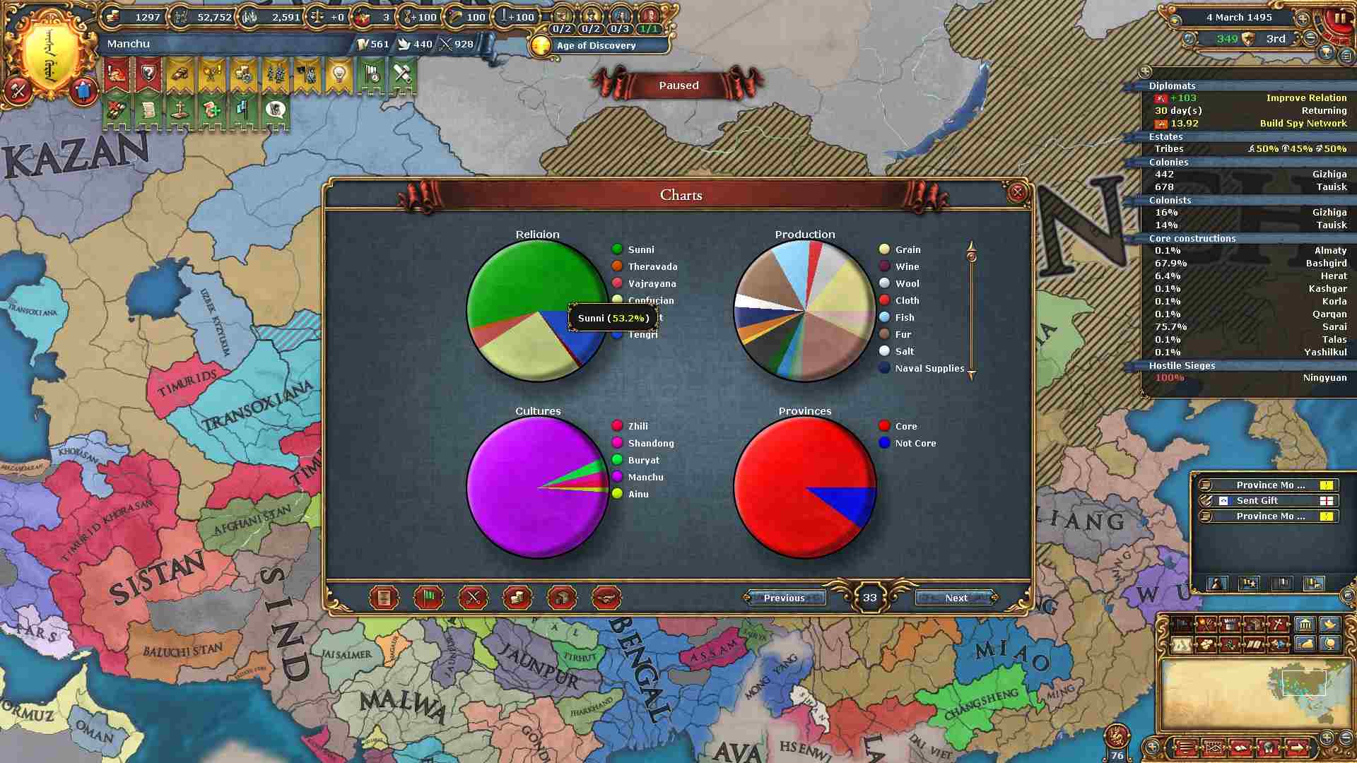 商人を派遣すると、リージョン内の州に自国の宗教を広めることが出来ます。