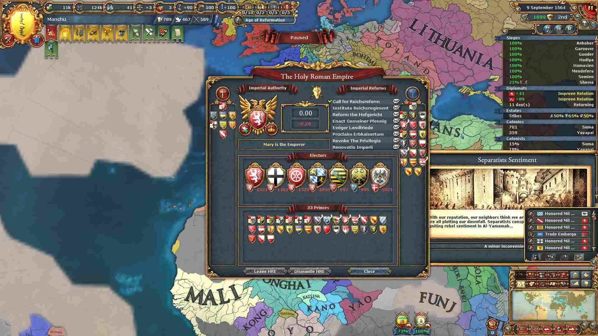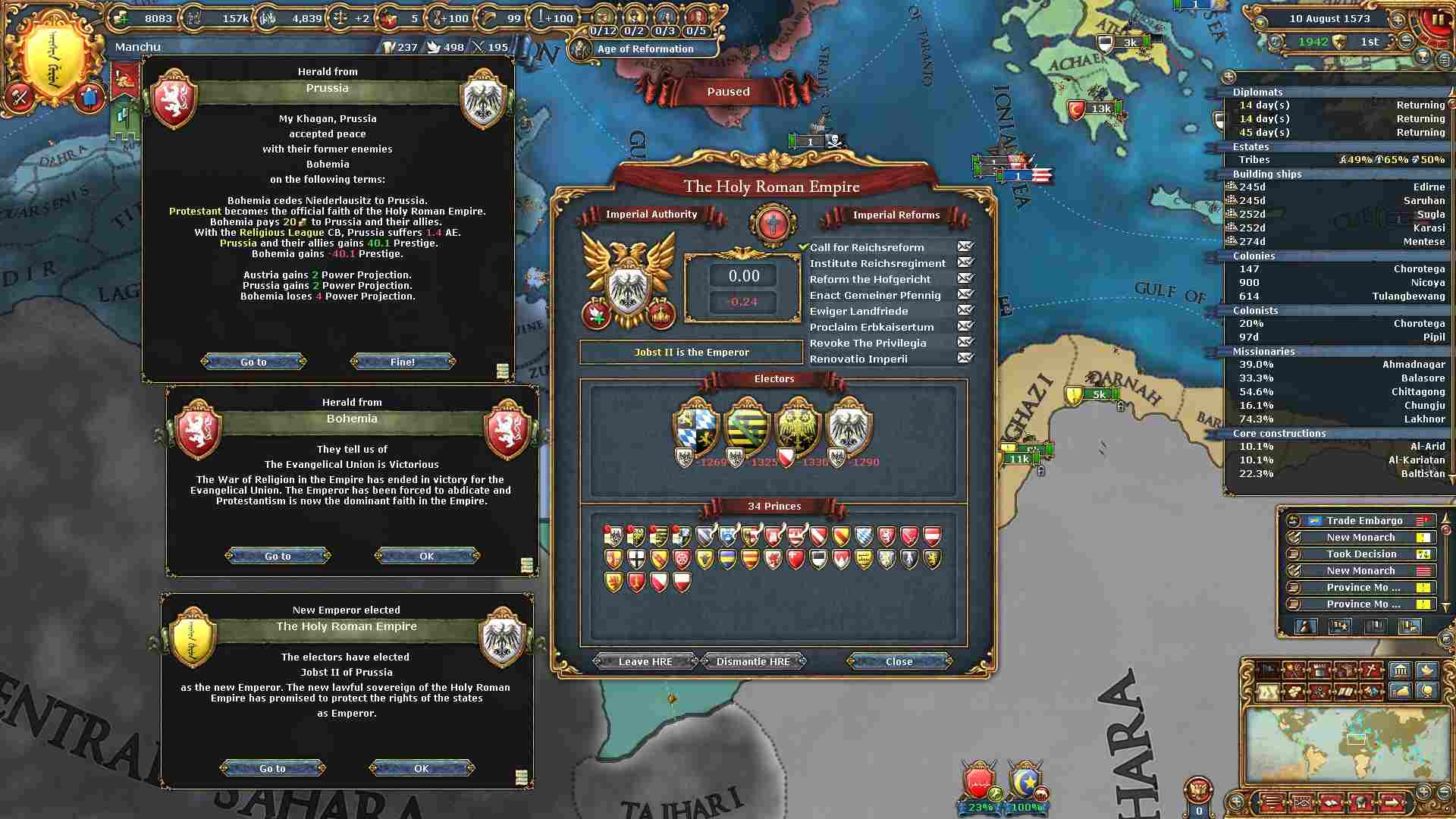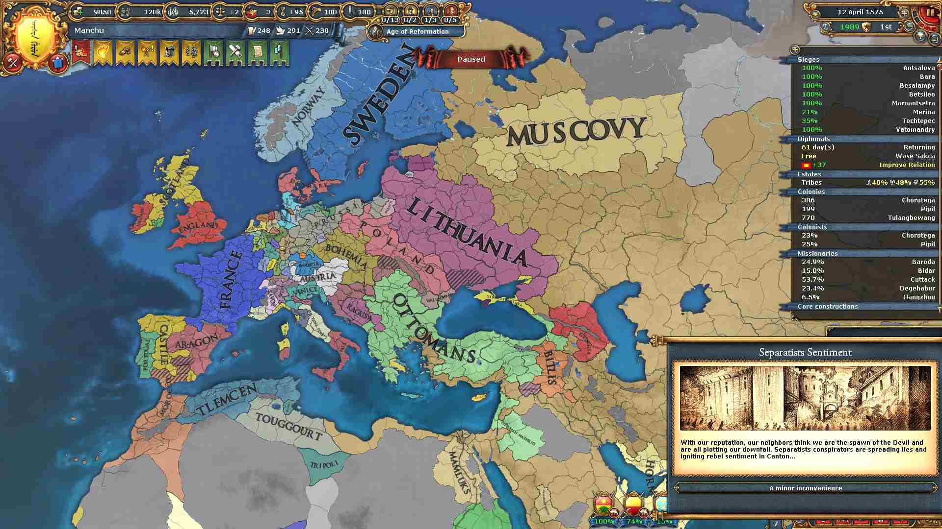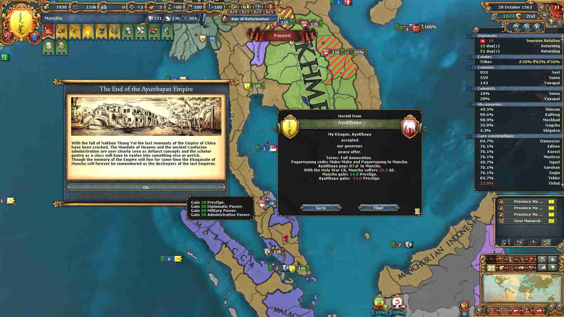 中華皇帝であったAyutthayaを完全併合した為、中華皇帝が消滅しました。