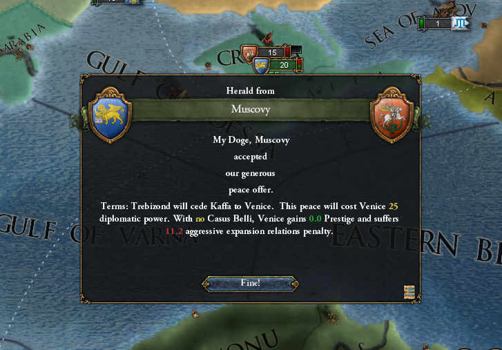 そこで、共和国は、クリミア半島南部のカッファの領有を狙い、トレビゾント帝国に宣戦布告した。