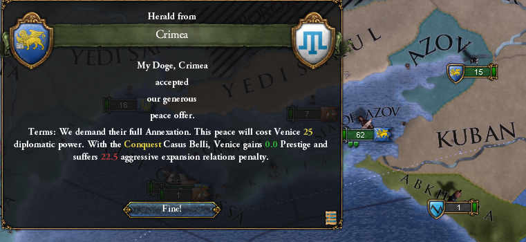 1540年代後半、共和国は併合したベッサラビアの対岸、交易の重要拠点であるクリミアの領有を狙い、クリミアハン国に宣戦布告。これを割譲させた。