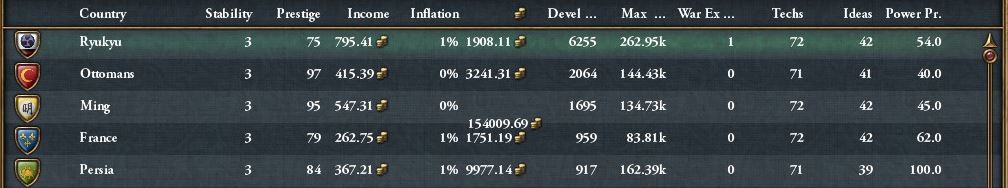 開発度はオスマン3倍になり技術・アイデアでも数だけは互角。いまだにオスマン・明をライバルに指定できているのでPPも50を超えています