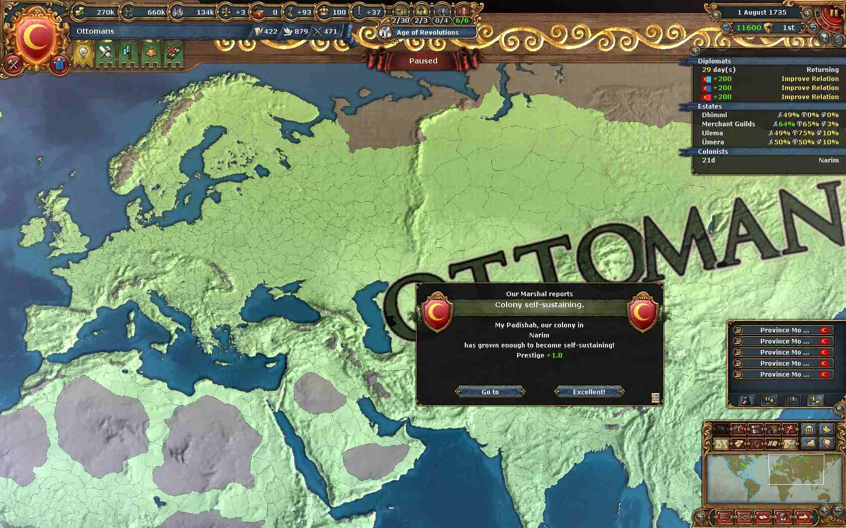 幸運なことに君主に植民数UPのtraitsが付いています。