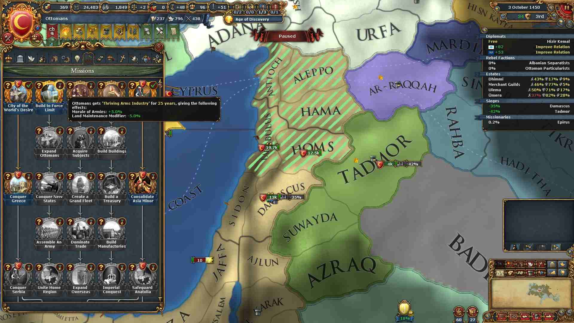 前回のAARでも書きましたが、デュルカディルの領土は永久請求権が得られる地域ですので直接征服したくなりますが、AEマネジメントの点で外交併合を選択しています。