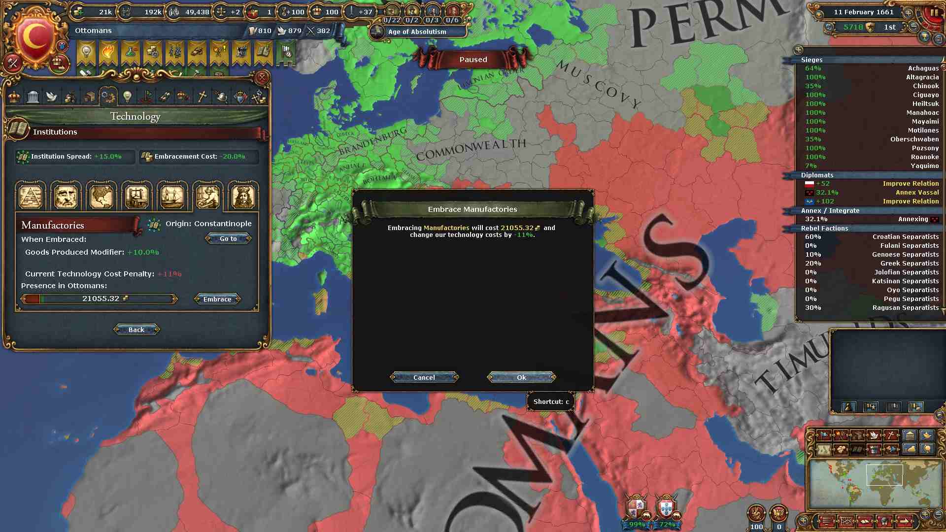 まずは東欧侵略のミッショツリーを進めるためにワラキアを攻めます。