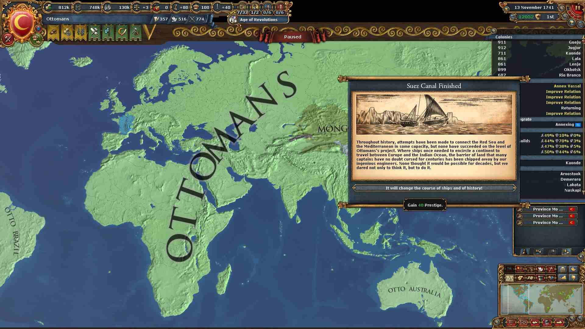 資金も余っているので各運河の建設を始めました。