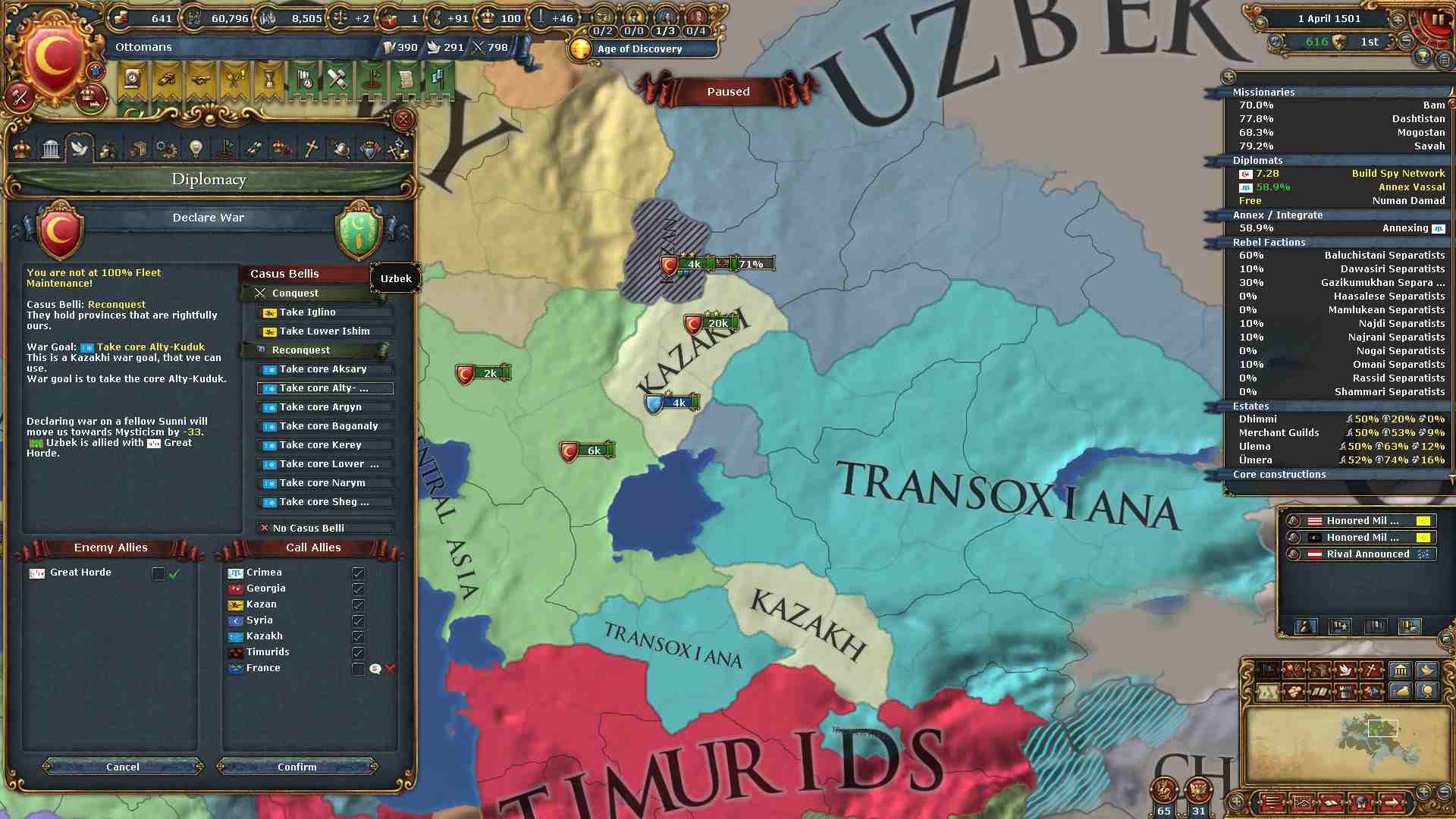 属国カザフのコア州を多く抱えるウズベクに宣戦布告