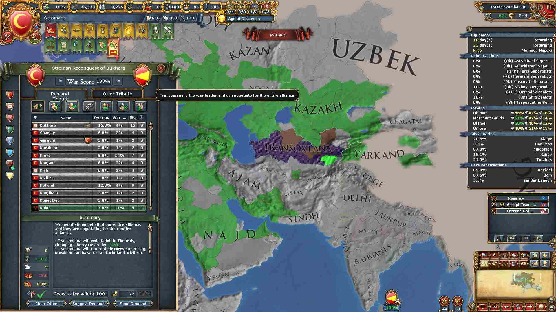 トランスオクシアナからティムールのコア州を大量に頂きました。