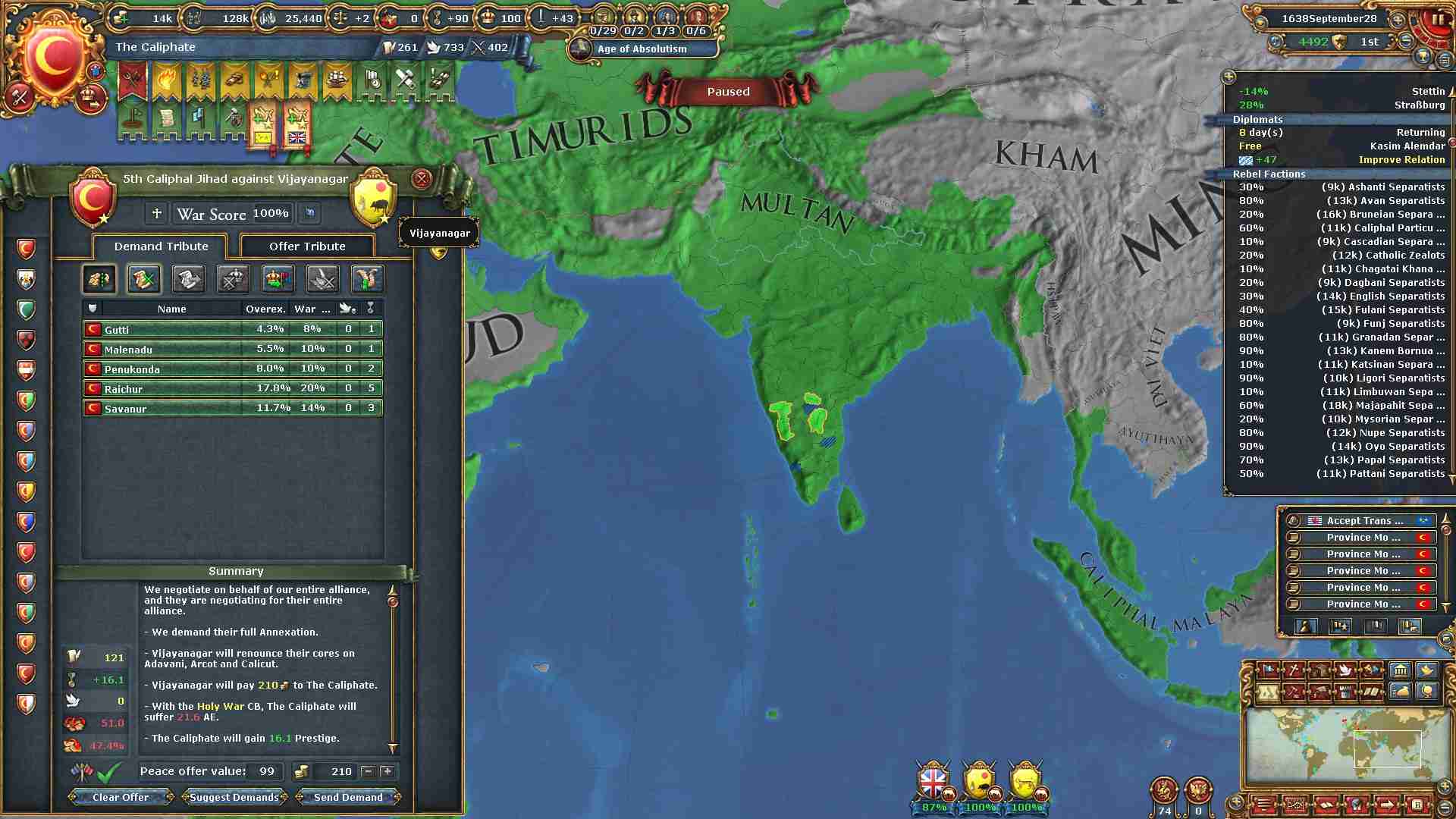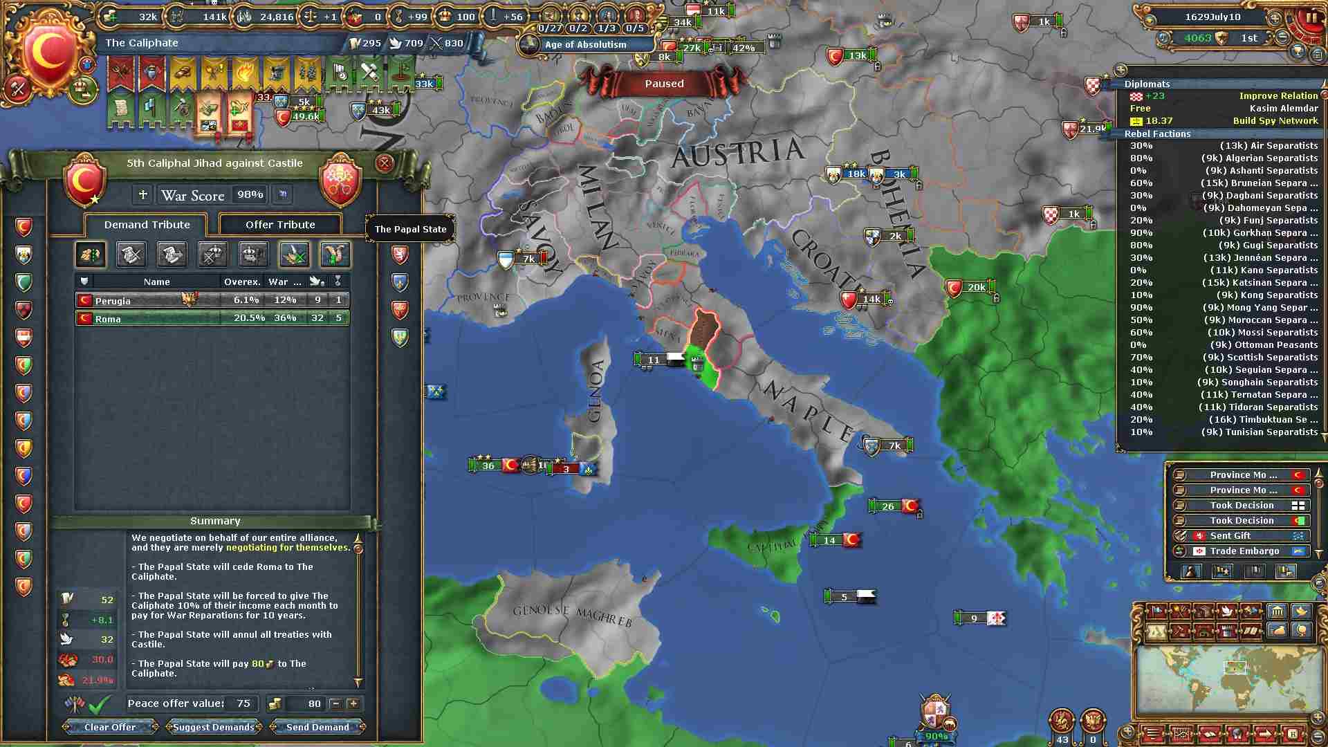 現バージョンから絶対主義値による統治効率が下がったため、拡大スピードが以前より下がっています。