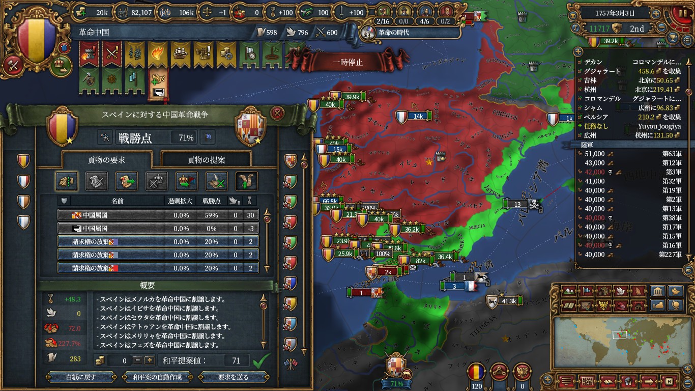 宗教や政体による補正は省きましたが、ここまで盛れるとOEが爆発しても反乱に困ることは少なかったですね。