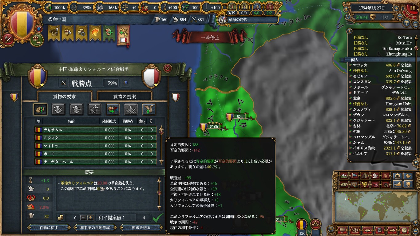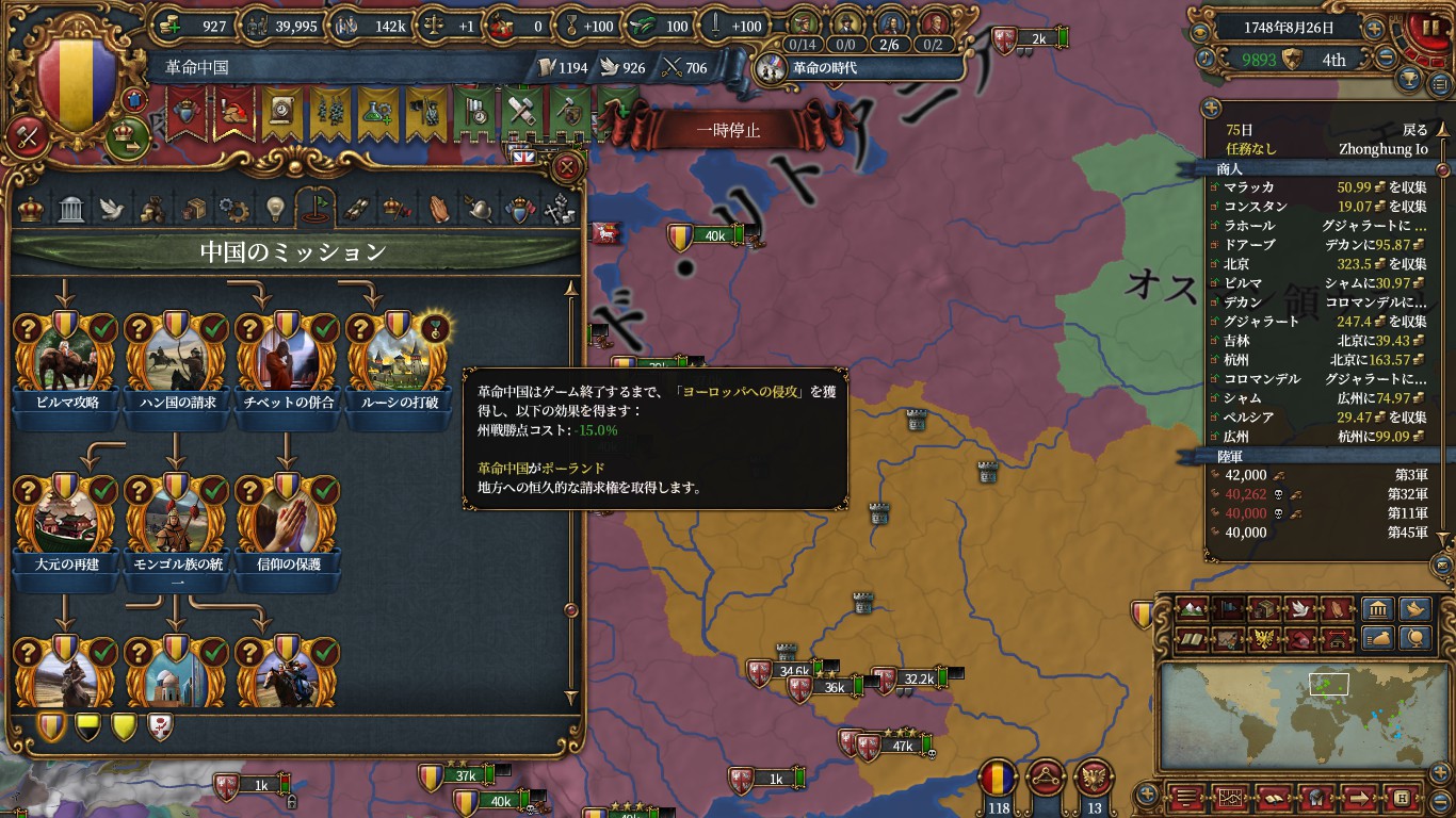 宮廷と国難を終え、清に変態し終えたのでミッションの請求権を利用してチャガタイ、朝鮮、東南アジアに侵攻していきます。