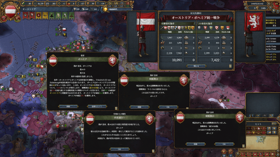 んで約2年で友好度が溜まったのでボヘミア同君戦争いきます。