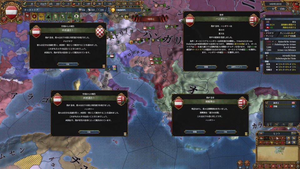まずはハンガリーの請求権でワラキア攻め、付いてきたヘルツェゴビナを属国化します。