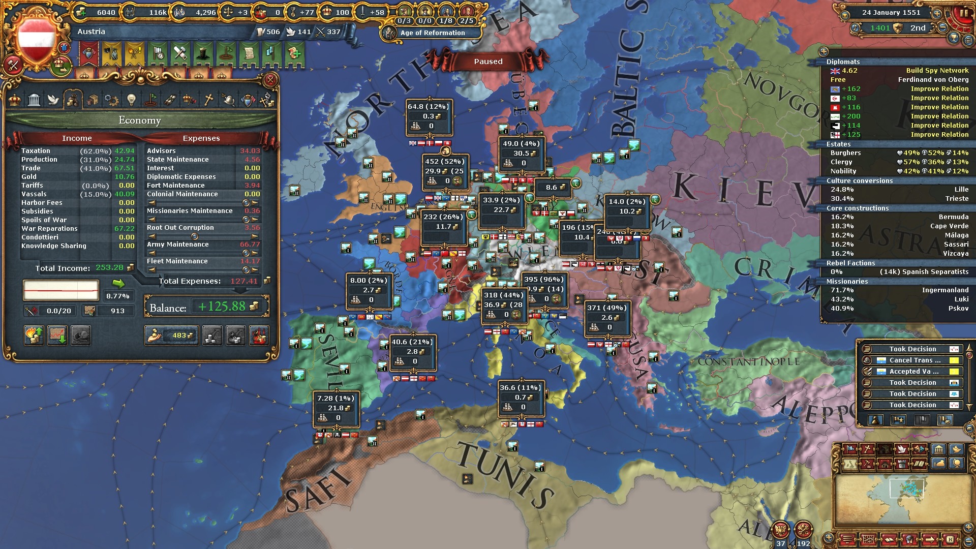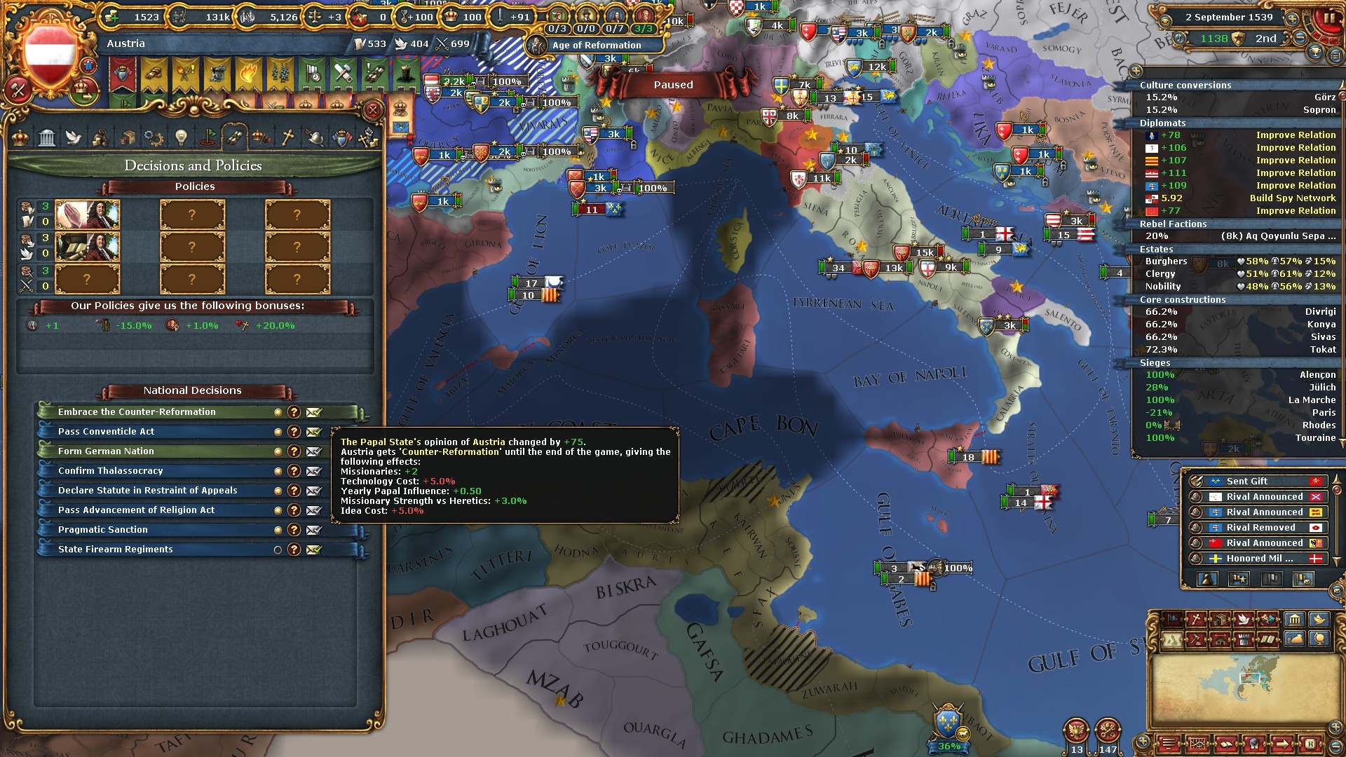 ここで遂に9番目の帝国改革「諸侯特権廃止(Revoke the Privilegia)」を通過させました。