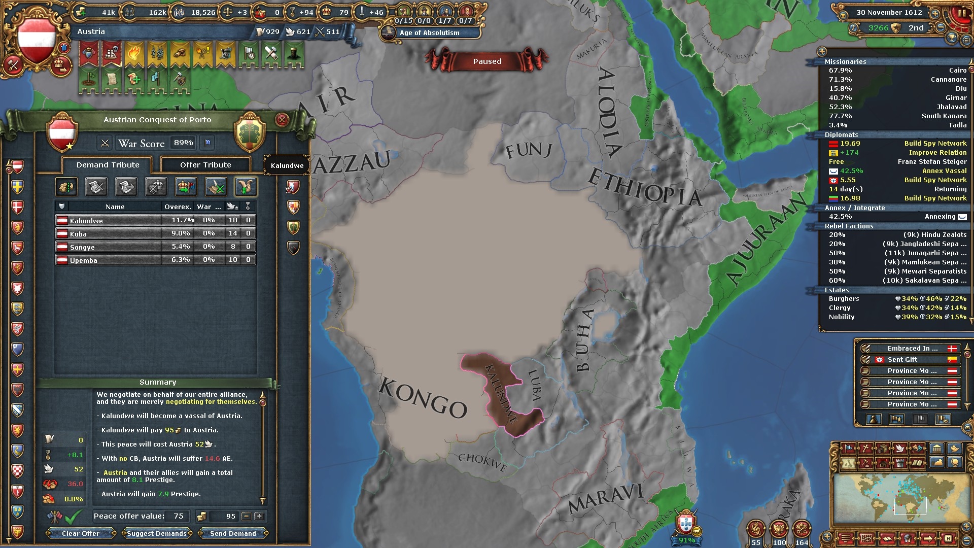 ポルトガル戦に付いてきたカルンドウェを武力属国化しました。