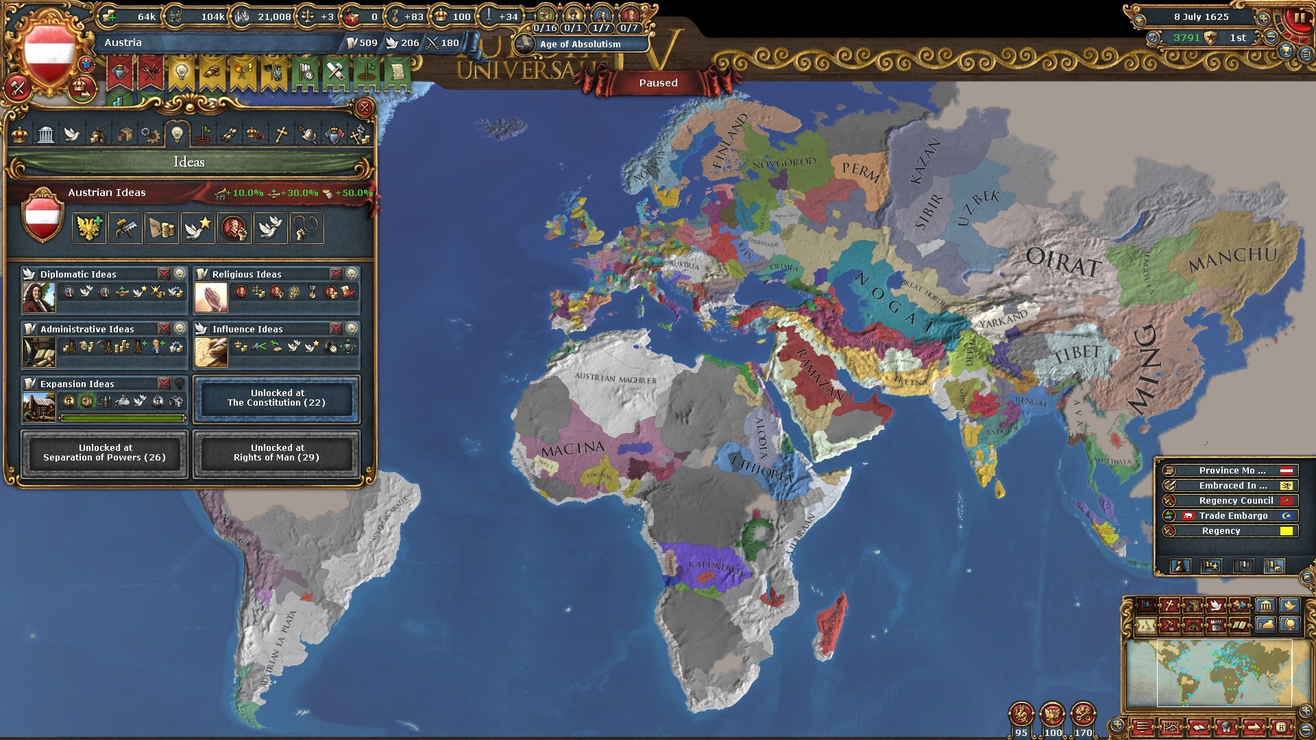 オスマンAARの時と違い神聖ローマ帝国ファンネルプレイでは、自国領を少なくできるので改革ポイントを稼ぐことが可能となります。