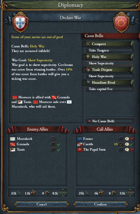 Castile→Granada→Portugalと渡ってくれるのが理想だった(Castileは怒って外交関係は悪化するだろうが、同盟破棄されるほどではないと思った)