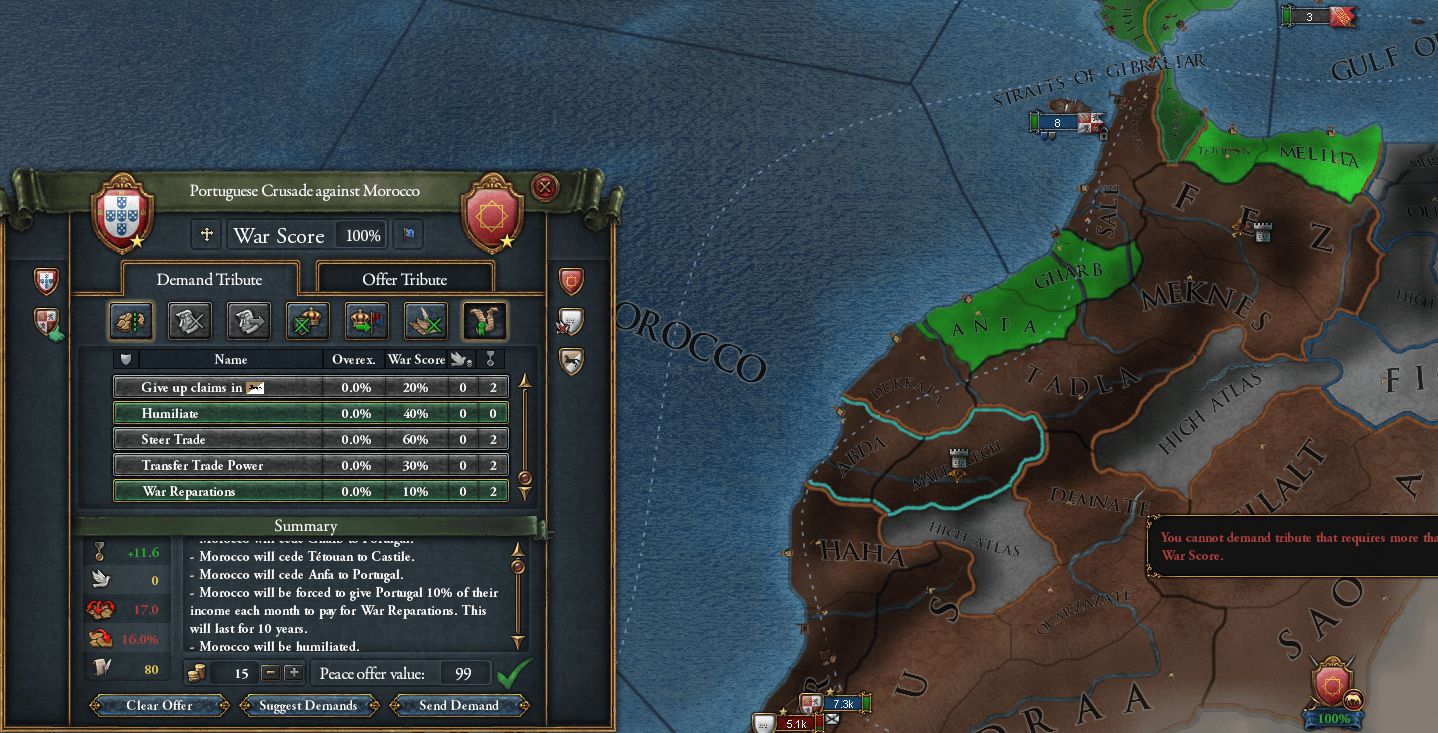 何なら先ほどのMorocco戦で、もしGranadaがCastile領の塗り絵をしていれば、個別講和でCastile領をGranadaに割譲させることすら想定していた