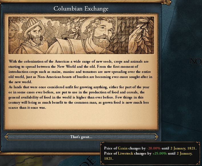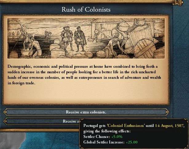 1474/06 時代能力"Higher Developed Colonies"(植民完了時に各項目のDEV+1)獲得