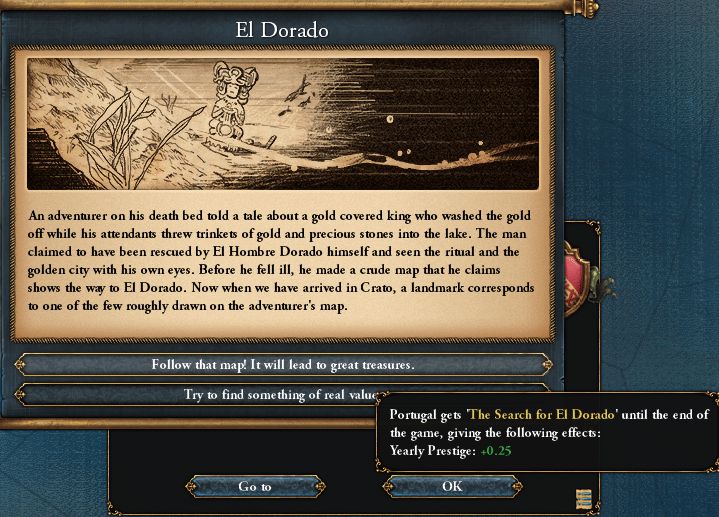 作者は黄金時代は大航海時代の間に使うことが多い。ルネッサンス受容のためのDEVポチが必須な国であれば、ミッション報酬の首都開発割引(がある場合)と タイミングを合わせて発動するように心がけている(国によってはその為に開発しやすい州に首都を移すこともある) その分絶対主義時代の国難「宮廷と地方」時に絶対主義65を稼ぐのが難しくなるが、そちらは今回のような特殊な縛りをしない限り 「特権の剥奪や直轄領を高く保つことで糊口をしのぐことができる」と考えている 今回のプレイではもう少し早い段階で発動することも可能だったが、どうせなら君主点割引だけではなく陸海軍の士気向上も役立てたかった 原住民相手の戦争があったので戦う機会も増えていくだろう、とその時は考えていたのだと思う。後から考えればこの時点での海兵隊は3連隊しか居ないので、 より本格的な戦争を起こせる時期まで温存する手もあったのだが、各君主点が溢れそうになっていたので勢いで発動してしまった