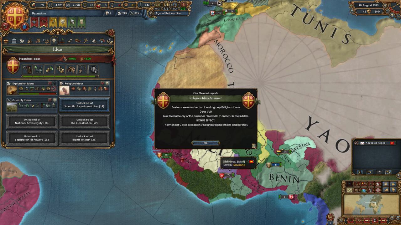 Quantityアイデアをコンプしたことにより西アフリカどころかアフリカ大陸全体を見てもオスマン以外敵となるような勢力がいない状況となりました。