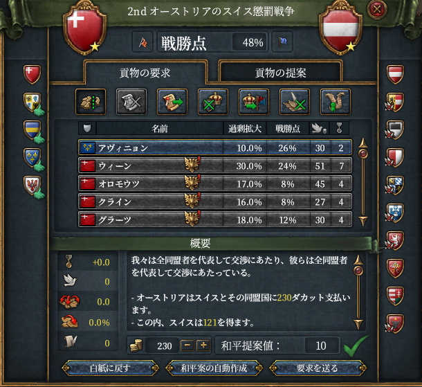 ????「くっくっく、それにしてもスイスもなかなかやりおるな。同盟でも結んで中欧の番犬にでもしてやろうか…。」