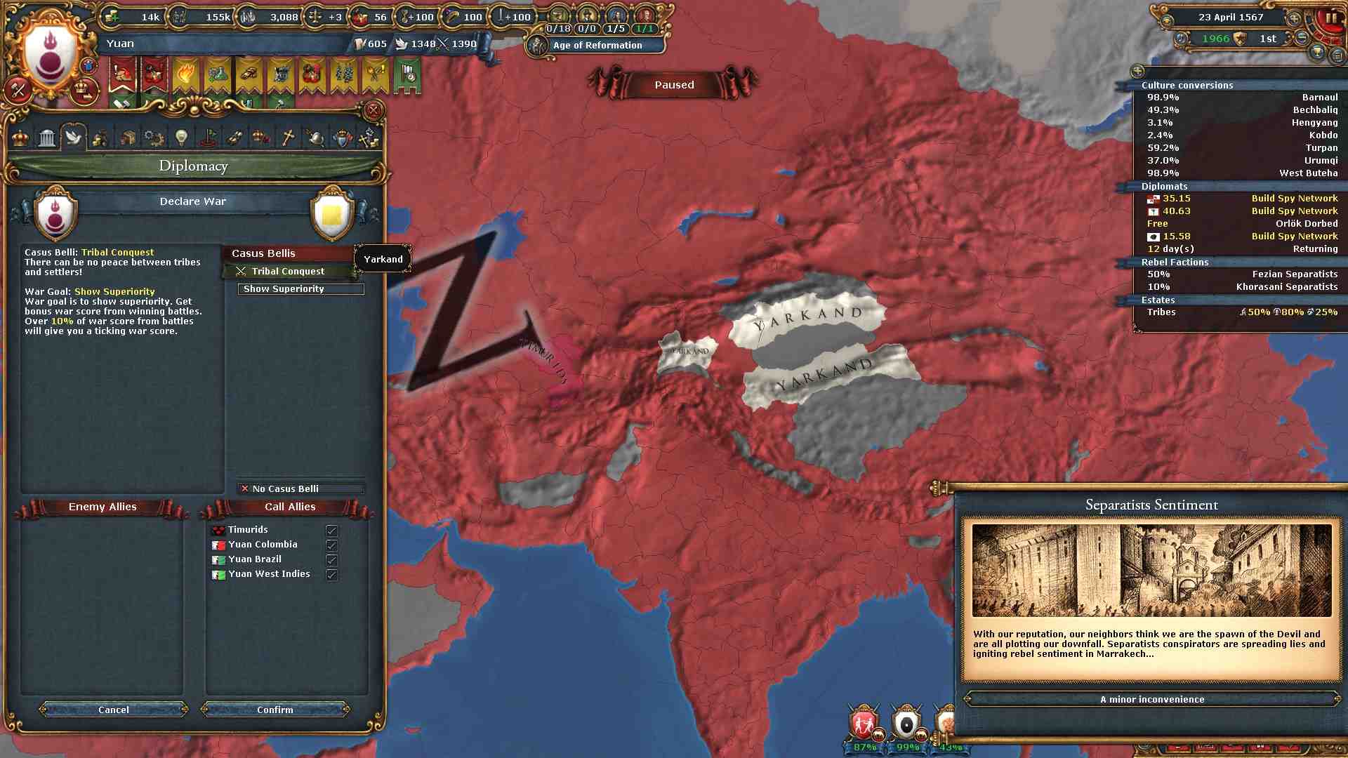 通常の大元プレイでは統治点を略奪によって得られる上、コア化コストも減少するので困ることはありません。