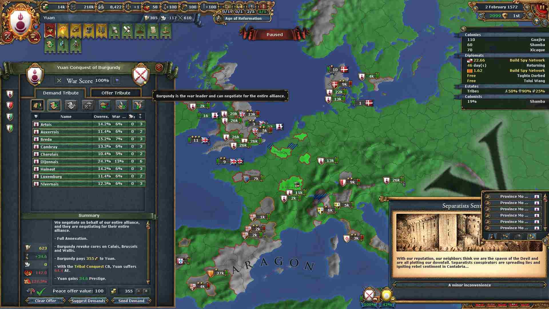 しぶとく粘っていたブルゴーニュを併合しました。
