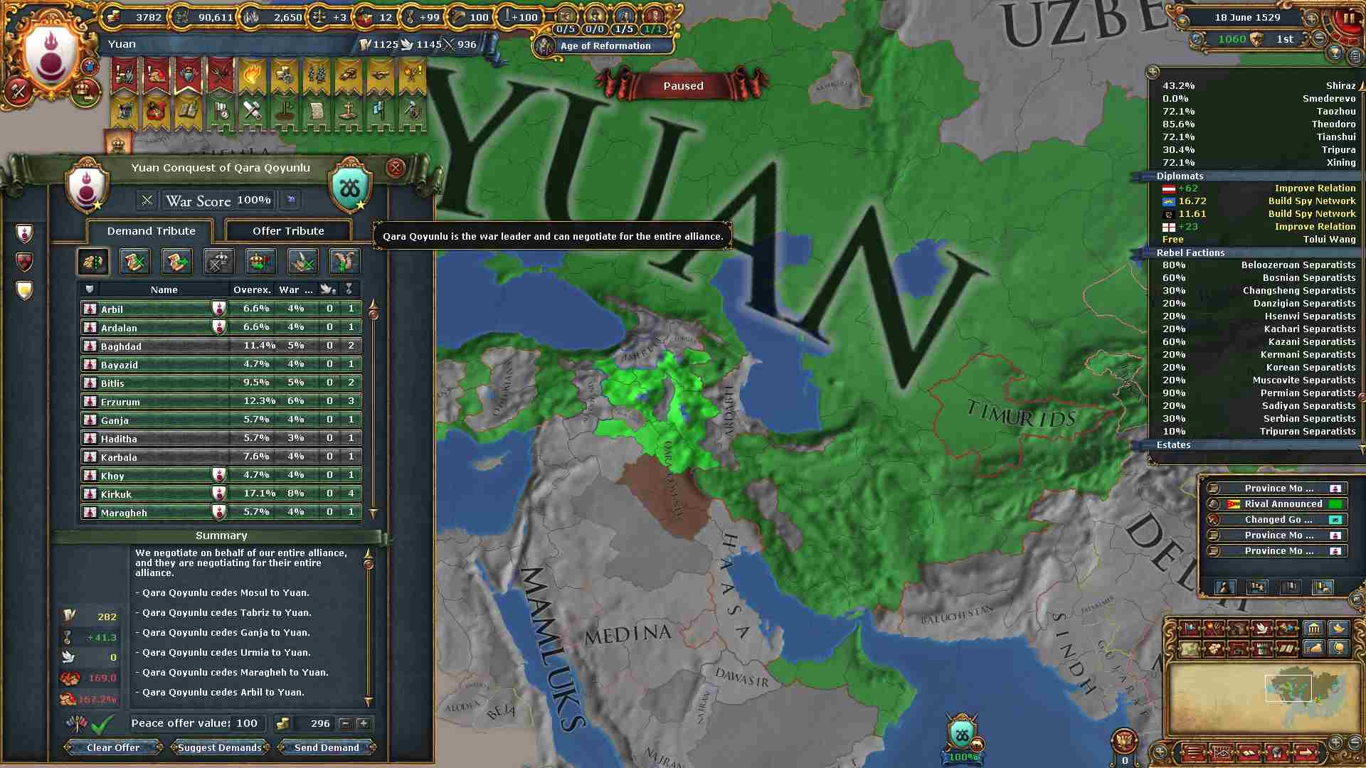 黒羊朝から必要な領土を奪ったので、ミッション「イルハン朝の復活」を達成しました。