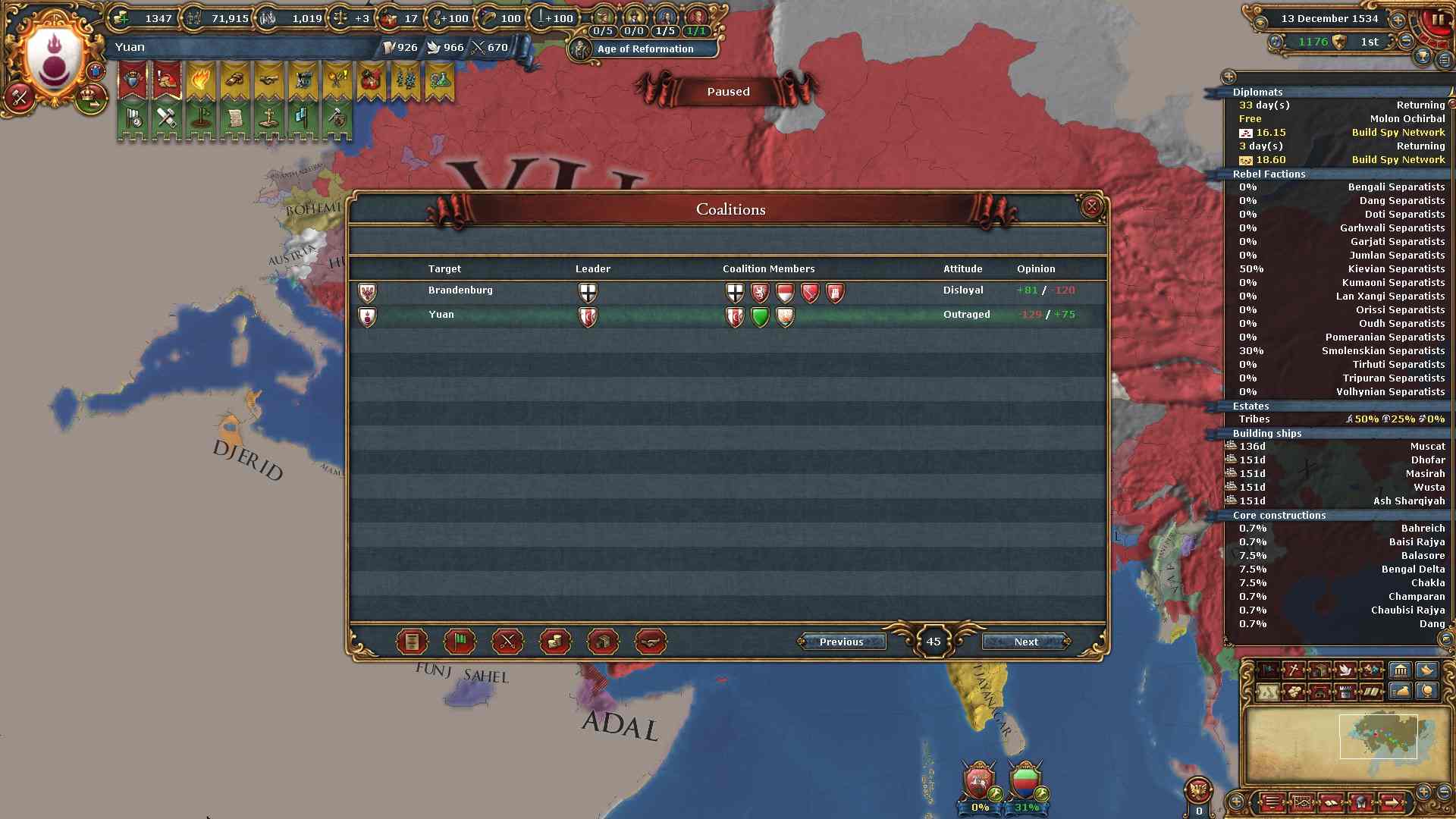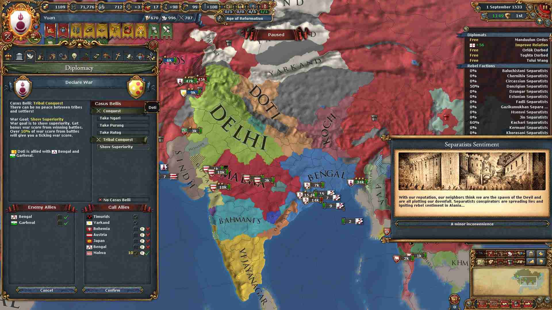 同盟:ベンガル、マルワ、ボヘミア、日本、アヴァ